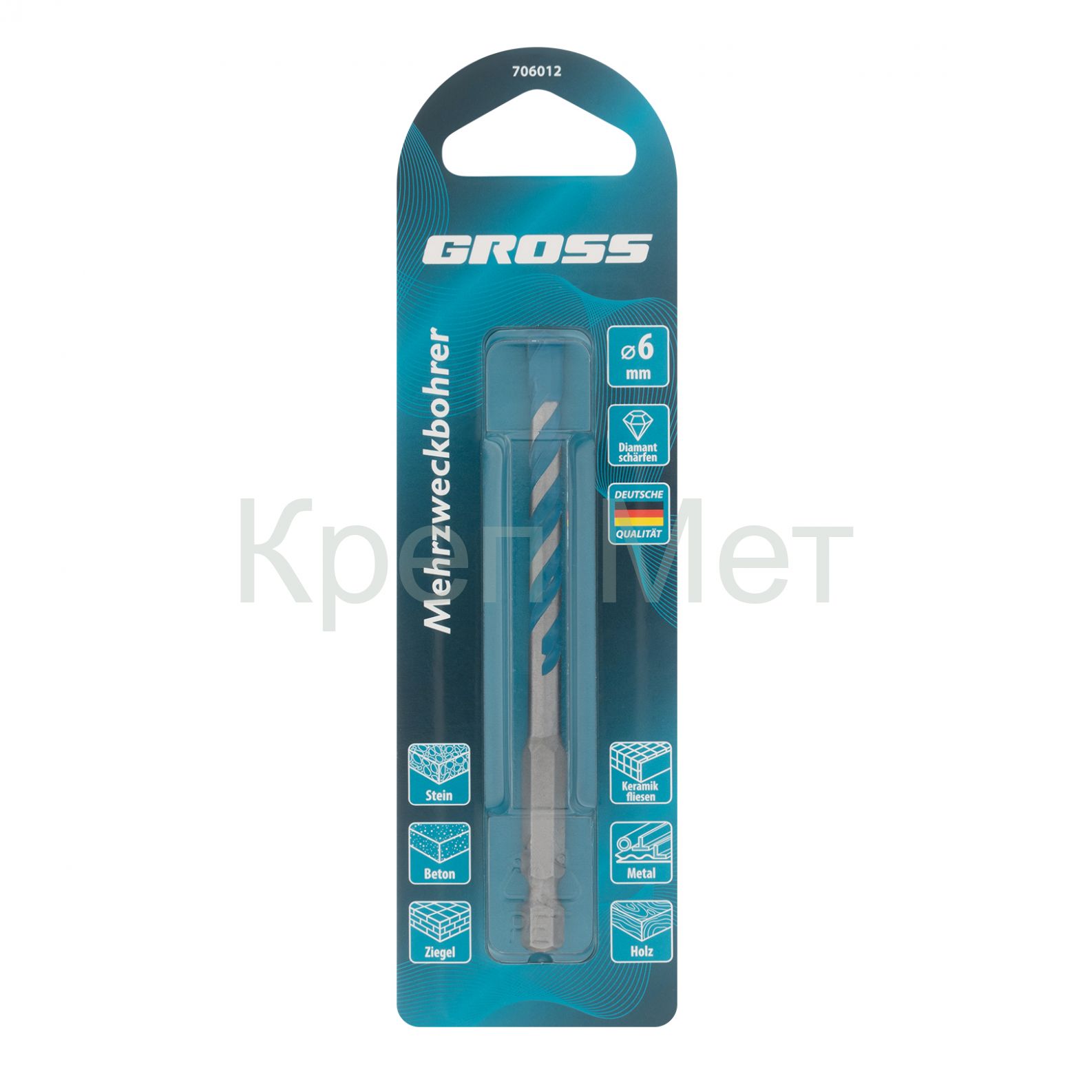 Сверло универсальное, Multipurpose PRO, 6-гр. хвостовик, 6мм Gross