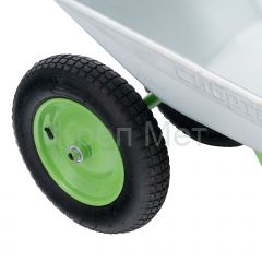 - Удобное перемещение даже по неровной поверхности — пневмоколеса с камерами и резиновыми шинами повышают плавность хода, каждое колесо оснащено 2 шариковыми подшипниками, облегчающими вращение и препятствующими износу.