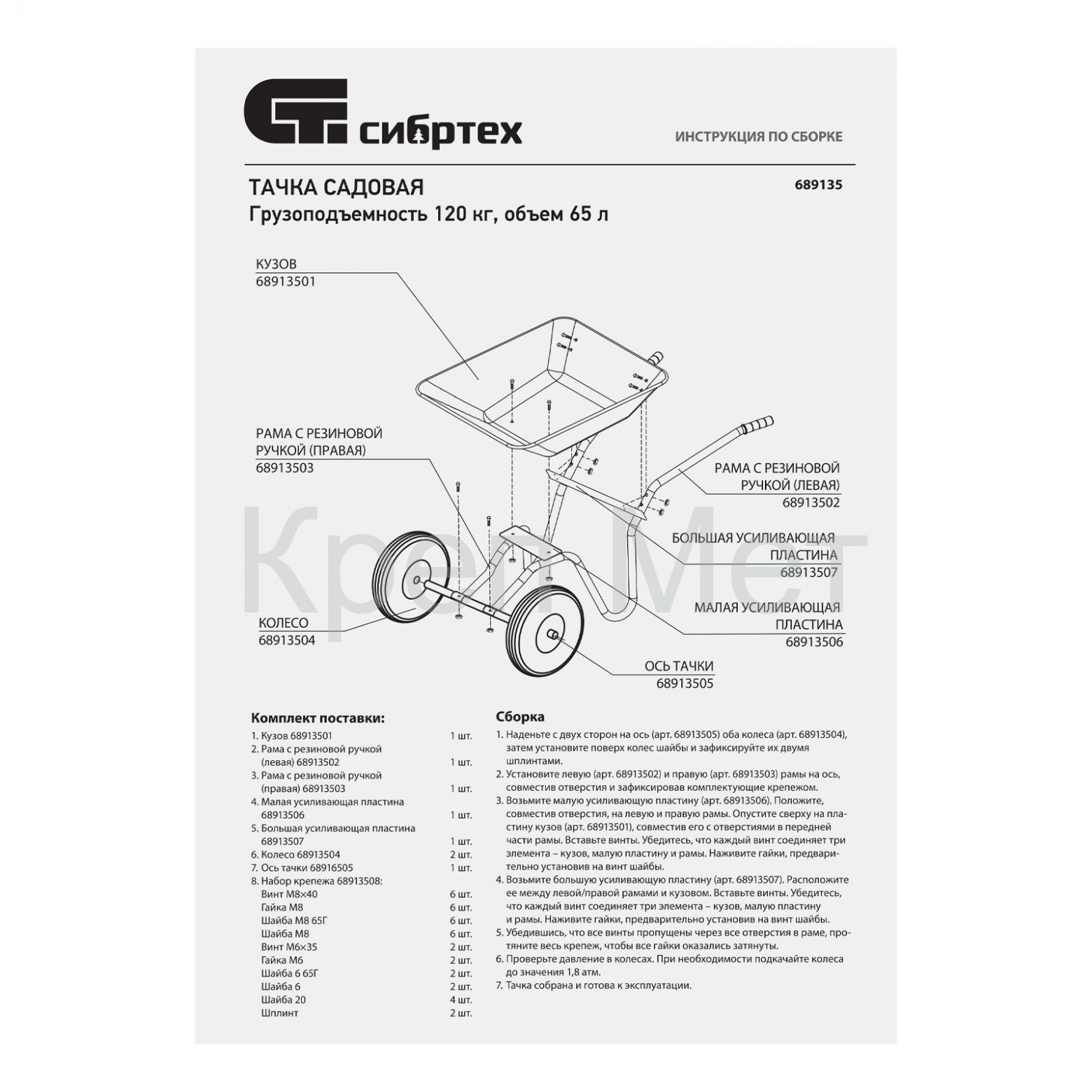 - Тачка садовая, 2-х колесная, грузоподъемность 120 кг, объем 65 л Сибртех