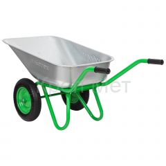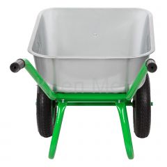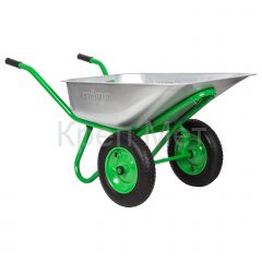 Двухколесная садово-строительная тачка Сибртех 689643 грузоподъемностью 230 кг, с объемом кузова 90 л, предназначена для перемещения грузов во время работы на строительной площадке или в саду. В ней можно перевозить грунт, щебень или строительные смеси. 2 колеса обеспечивают высокую грузоподъемность, а также устойчивость во время движения по прямой и на поворотах. Вес груза распределяется равномерно, поэтому тачка не проваливается даже в рыхлый грунт.