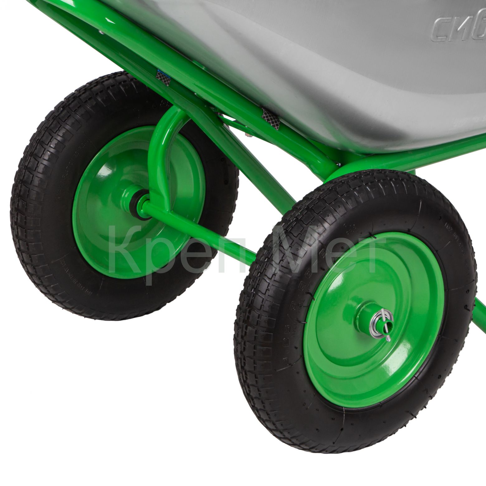 - Антикоррозийная защита — стальное корыто оцинковано, а рама, опора и колесные диски покрыты порошковой эмалью.