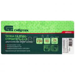 - Тачка садово-строительная 2-х колесная, грузоподъемность 230 кг, объем 90 л Сибртех