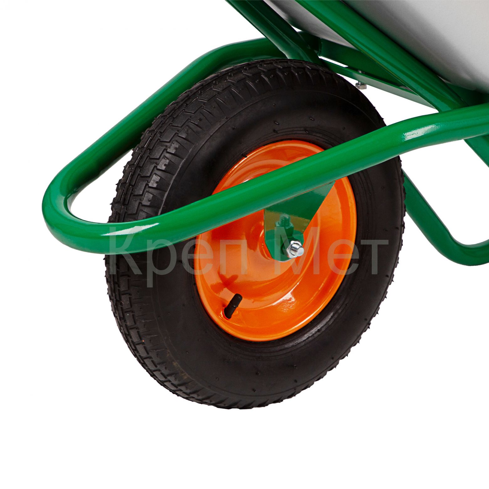 - Маневренность и хорошая проходимость — тачку с одним пневматическим колесом на 2-х шариковых подшипниках удобно перемещать и разворачивать.