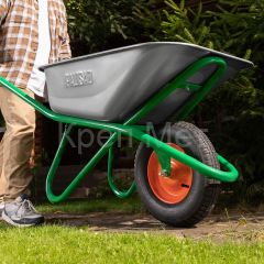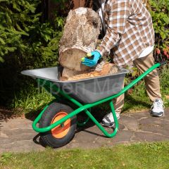 - Хорошая проходимость — колесо с 2 шарикоподшипниками легко вращается, упрощая перемещение тачки по неровной поверхности.