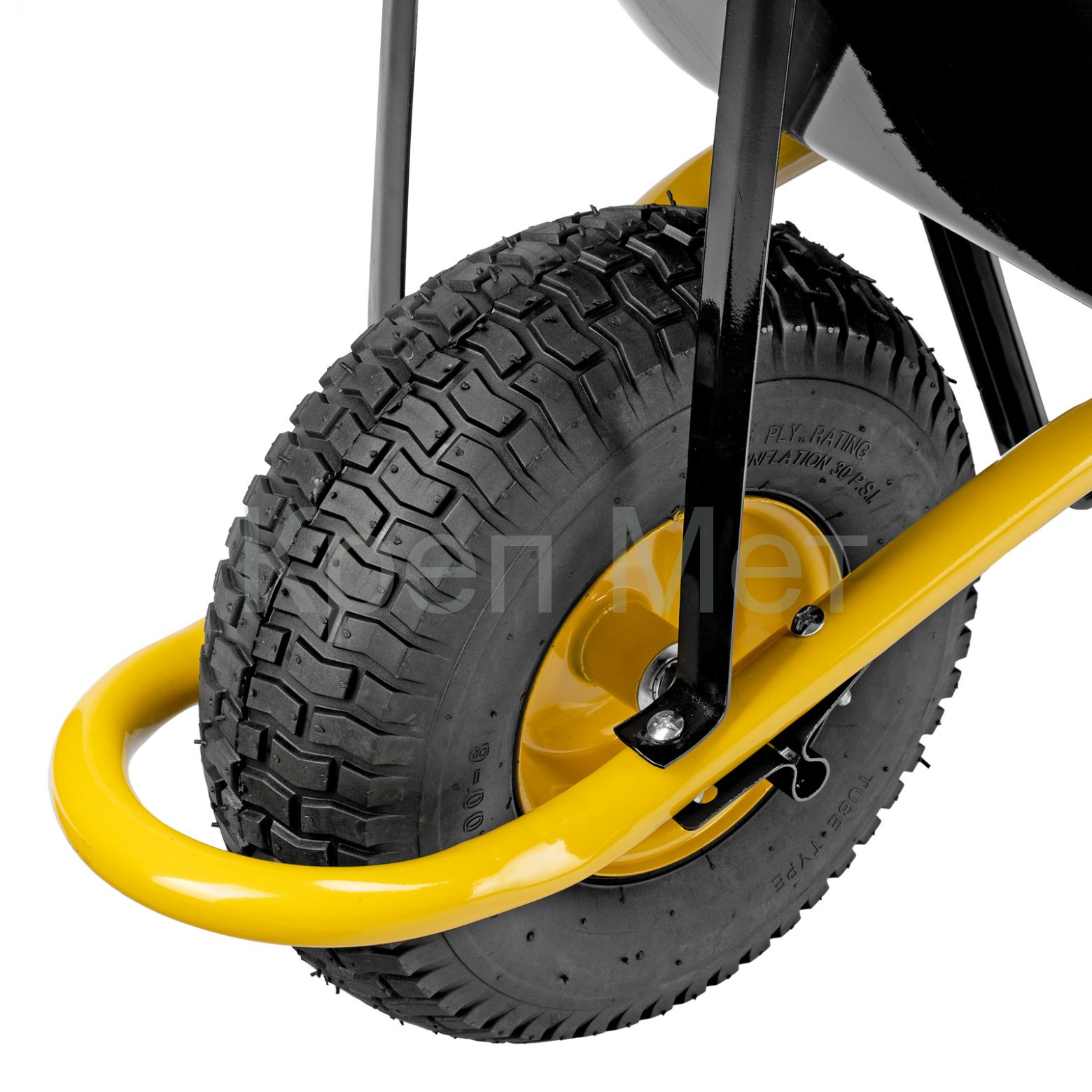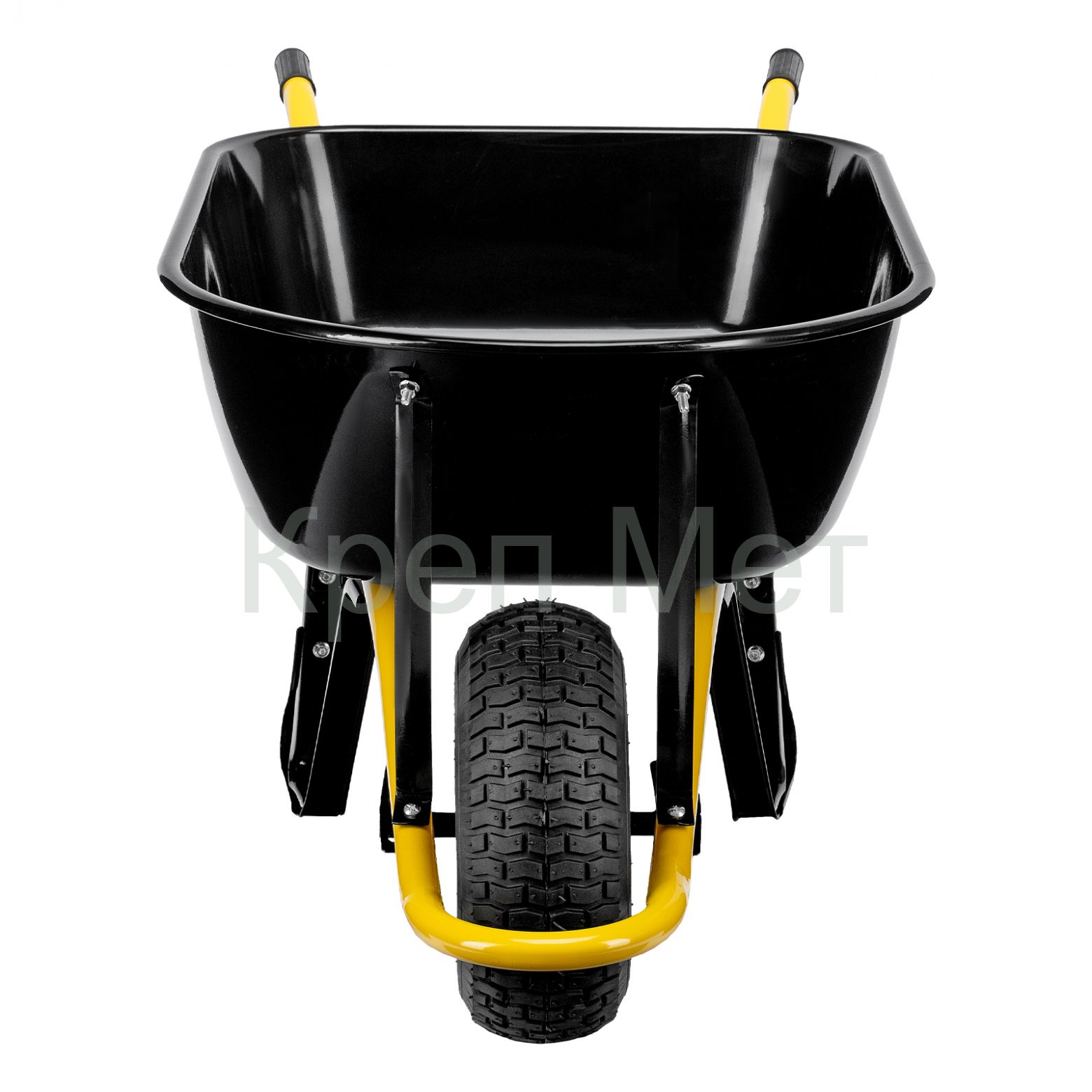 - Устойчивость — тачка не проваливается в грунт благодаря широкому пневмоколесу и подпятникам на ножках.