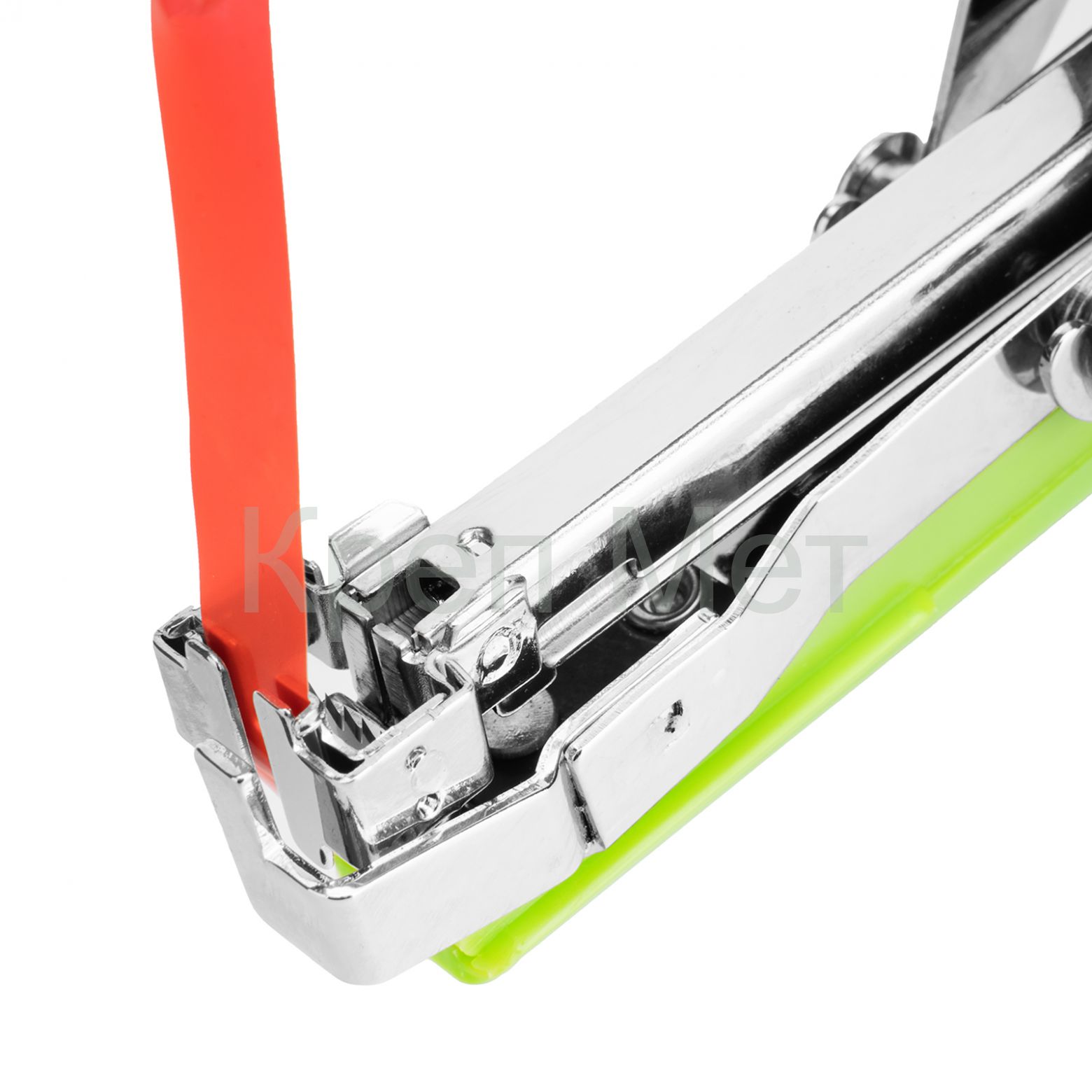 - Эффективность — ударный механизм обеспечивает мгновенное скрепление ленты при помощи скобы.
