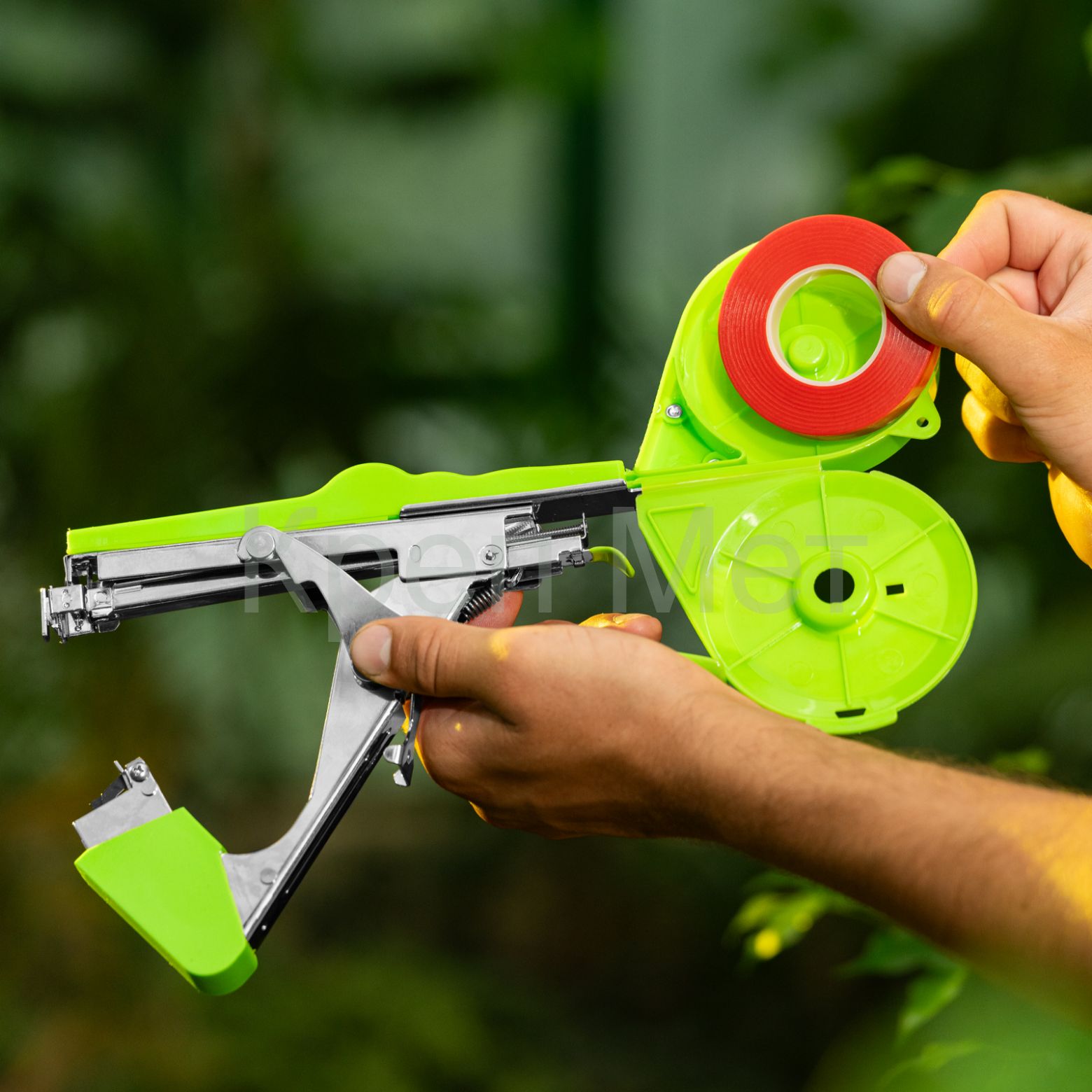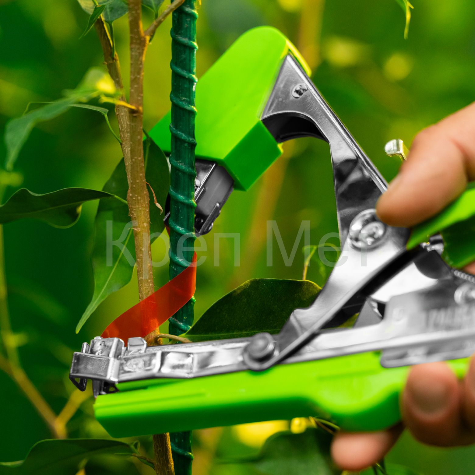 - Удобная комплектация — тапенер поставляется с лентой длиной 30 м (хватит на 600 подвязок) и комплектом скоб, что позволяет сразу приступить к работе.