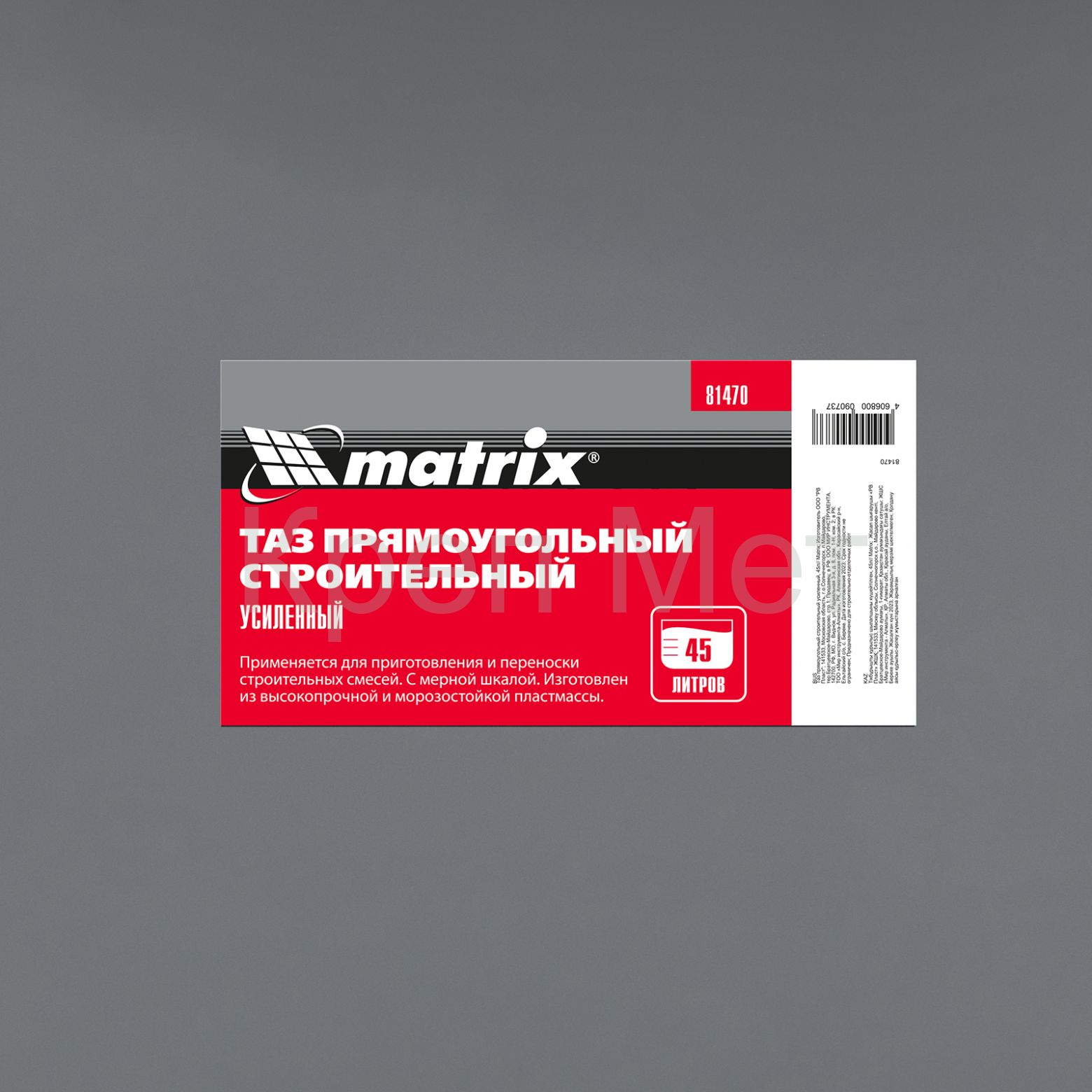 - Таз прямоугольный строительный усиленный, 45 л Matrix