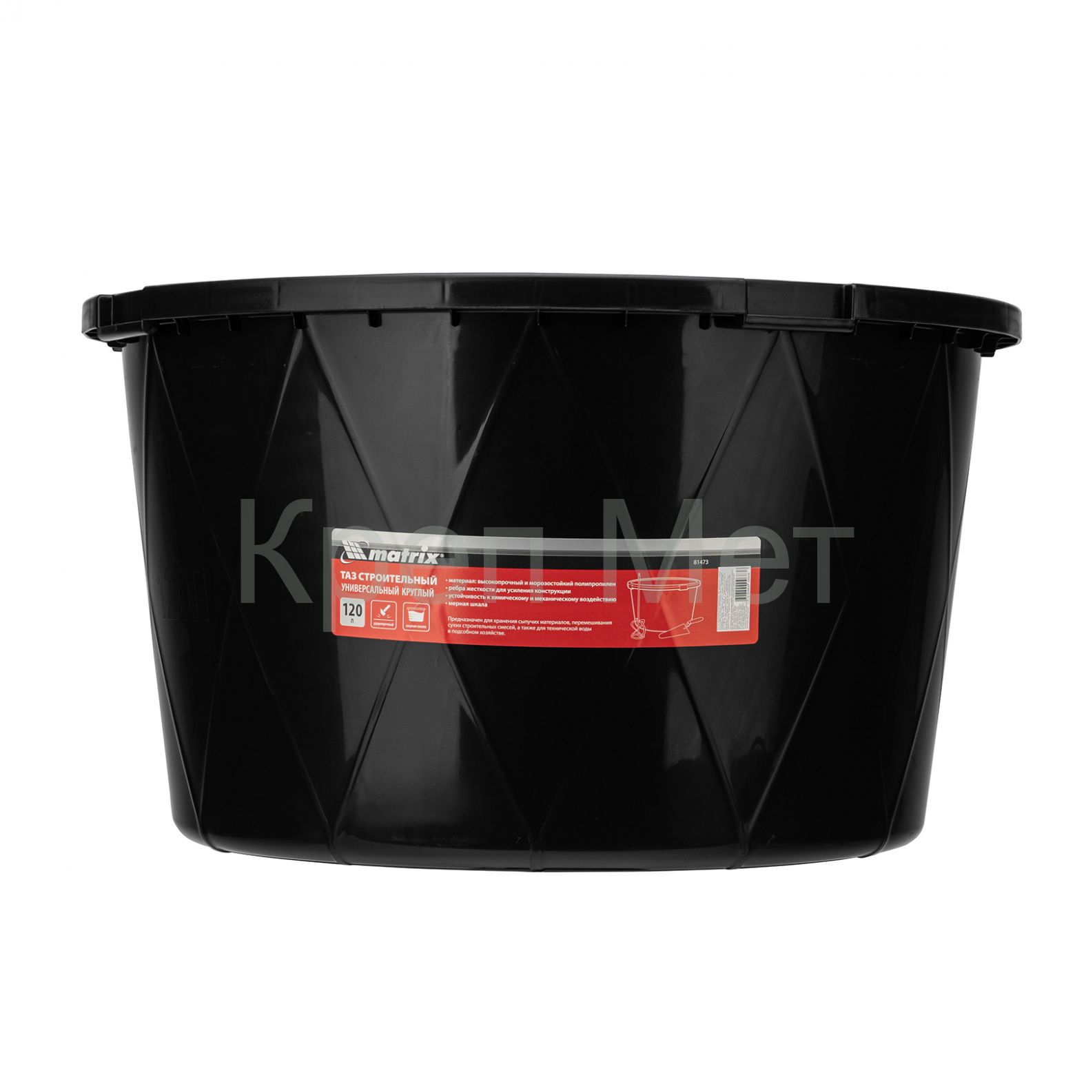 - Таз строительный круглый универсальный, 120л, ударопрочный, с ребрами жесткости Matrix