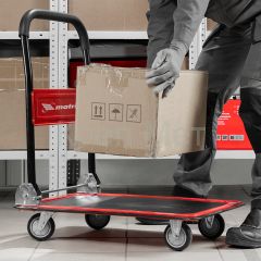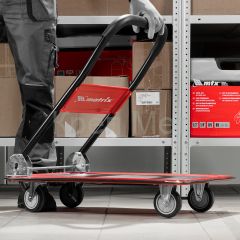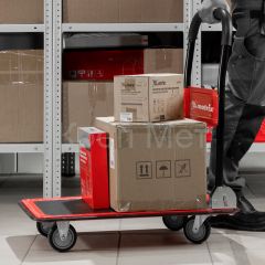 Хозяйственная тележка Matrix 98211 предназначена для перемещения грузов массой до 150 кг. На платформе размером 730 x 475 мм можно разместить даже крупногабаритные предметы.