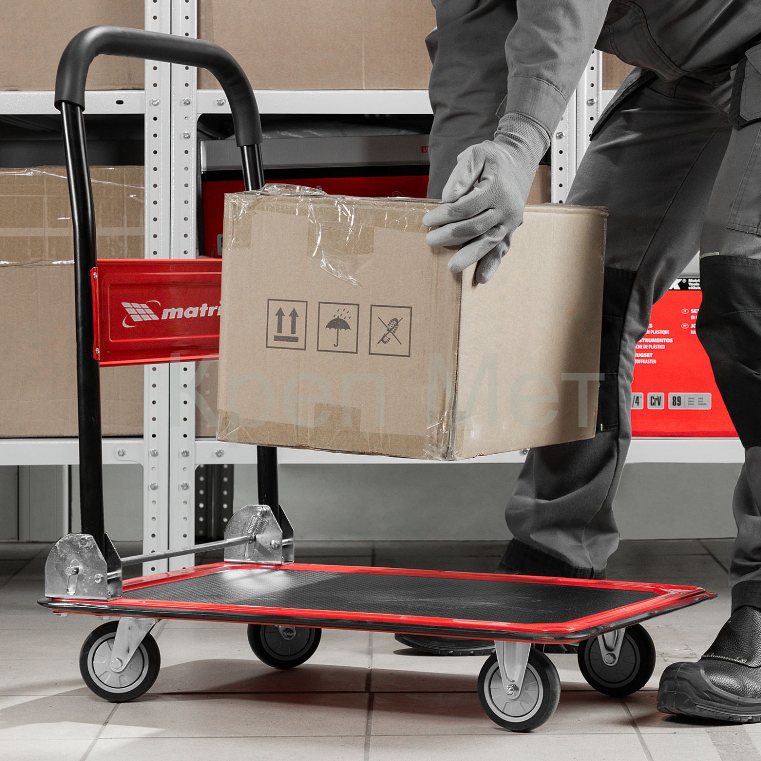 - Продуманная конструкция — противоскользящее покрытие платформы препятствует смещению груза во время транспортировки.