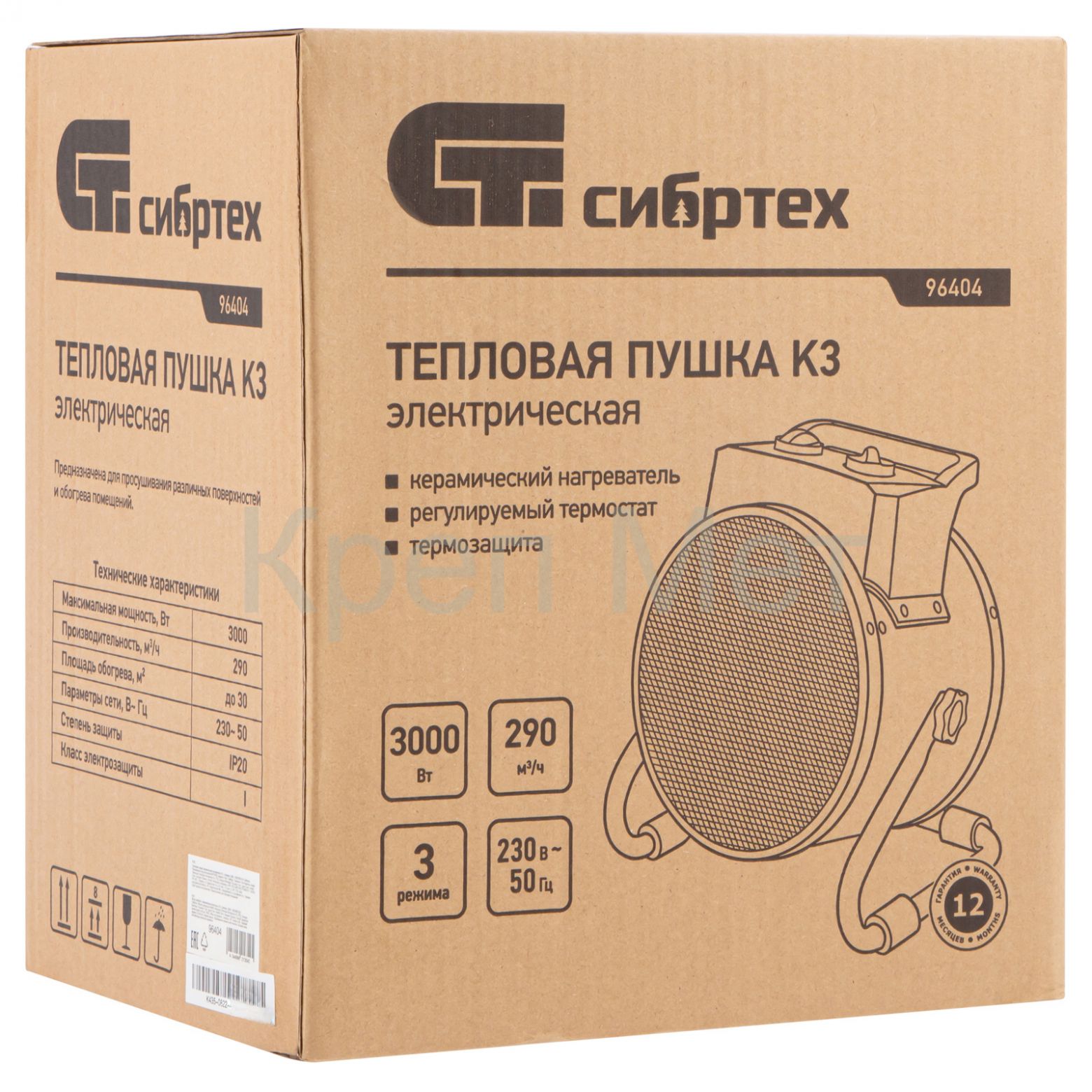 - Тепловая пушка, керамический нагреватель K3, 3 режима, 230В, 1500/3000 Вт Сибртех