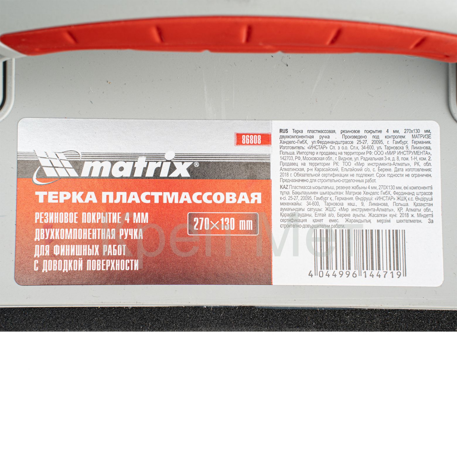 - Терка пластмассовая, резиновое покрытие 4 мм, 270 x 130 мм, двухкомпонентная ручка Matrix