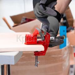 - Простое использование — винтовой зажимной механизм позволяет легко устанавливать и снимать тиски с рабочего стола.