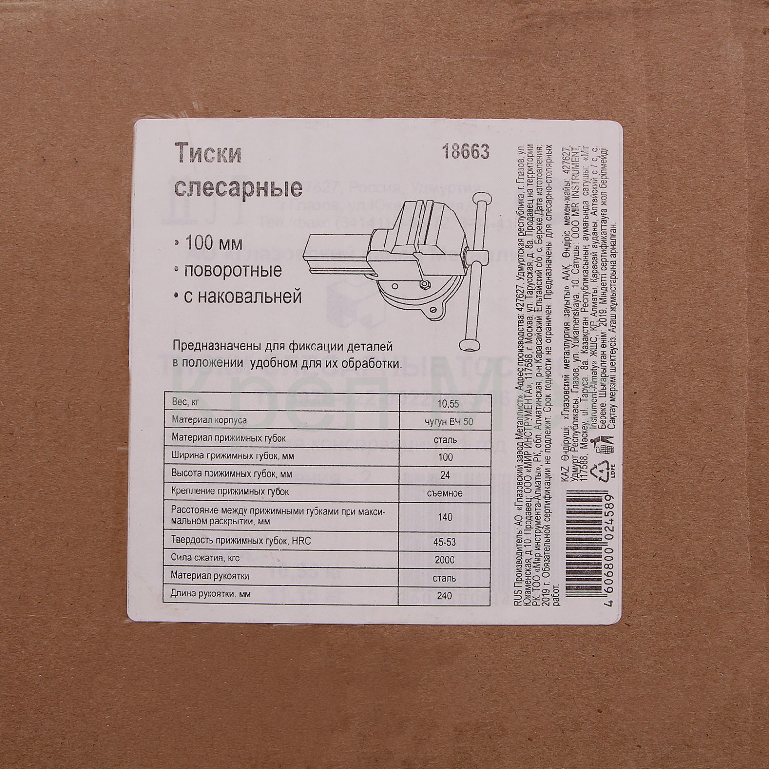 - Тиски слесарные, 100 мм, поворотные (Глазов)