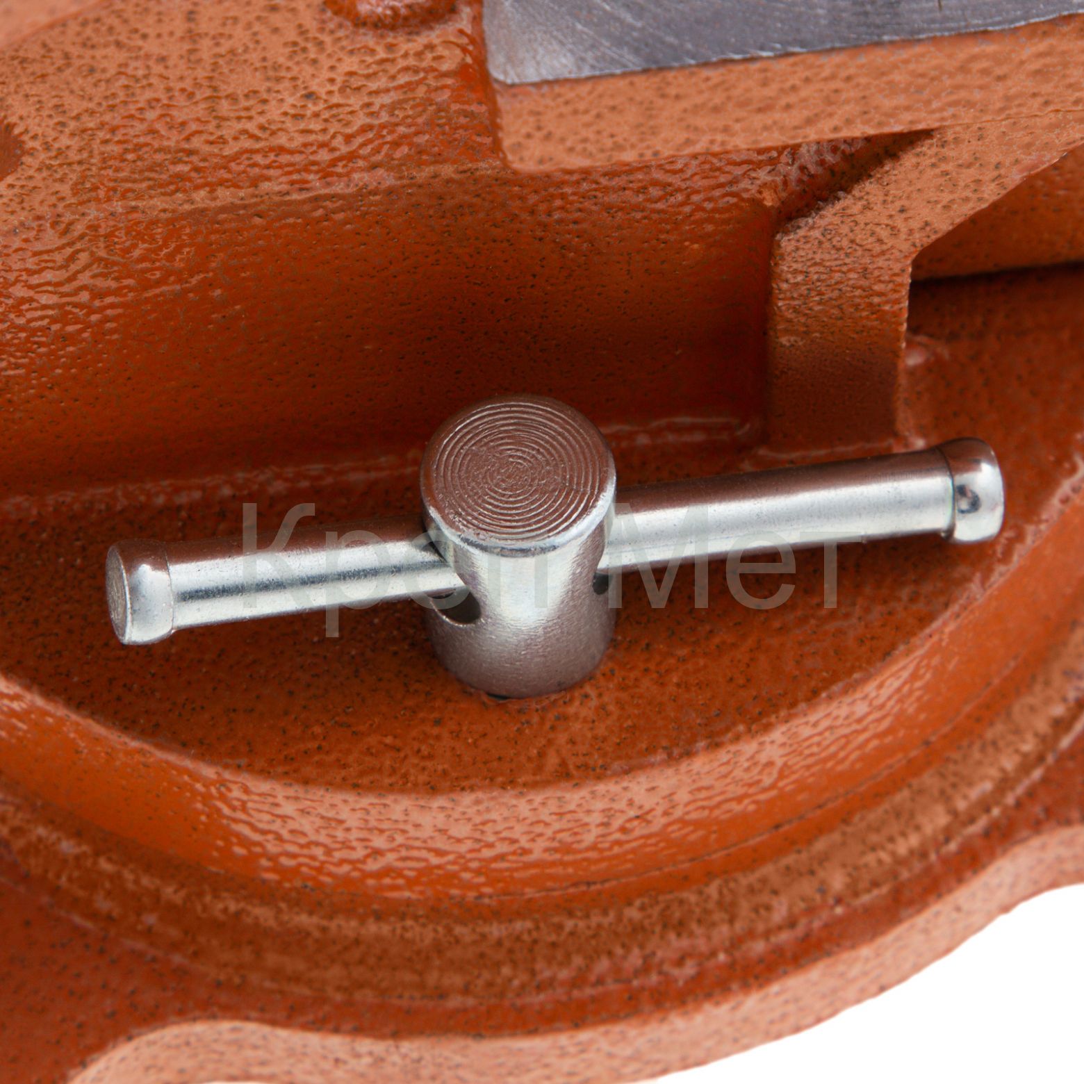 Поворотные слесарные тиски Sparta 186235 с наковальней, ширина губок 100 мм, — это небольшой инструмент для захвата деталей до 75 мм. Будут полезны в частной мастерской или гараже для удобства обработки малогабаритных заготовок.