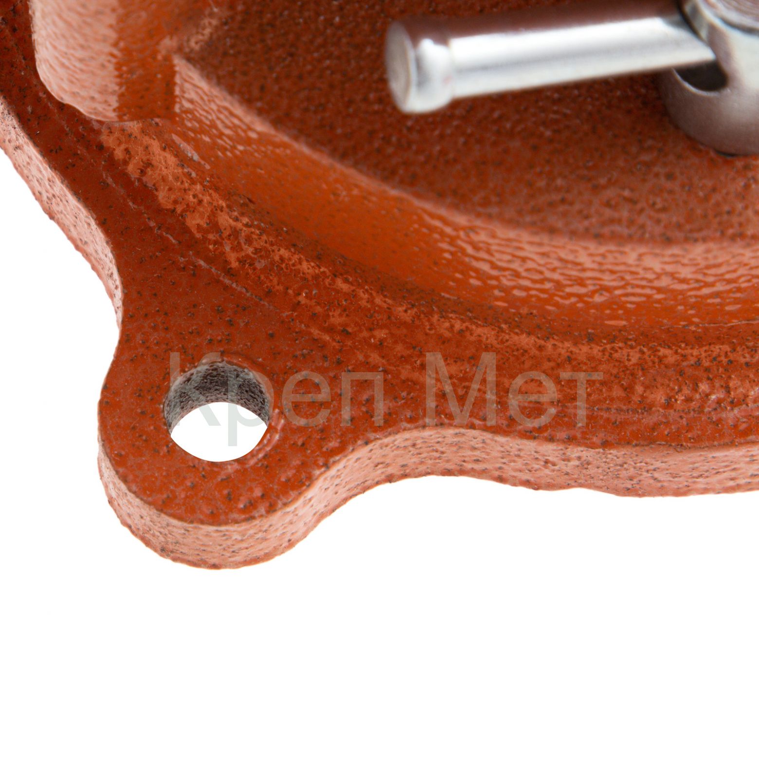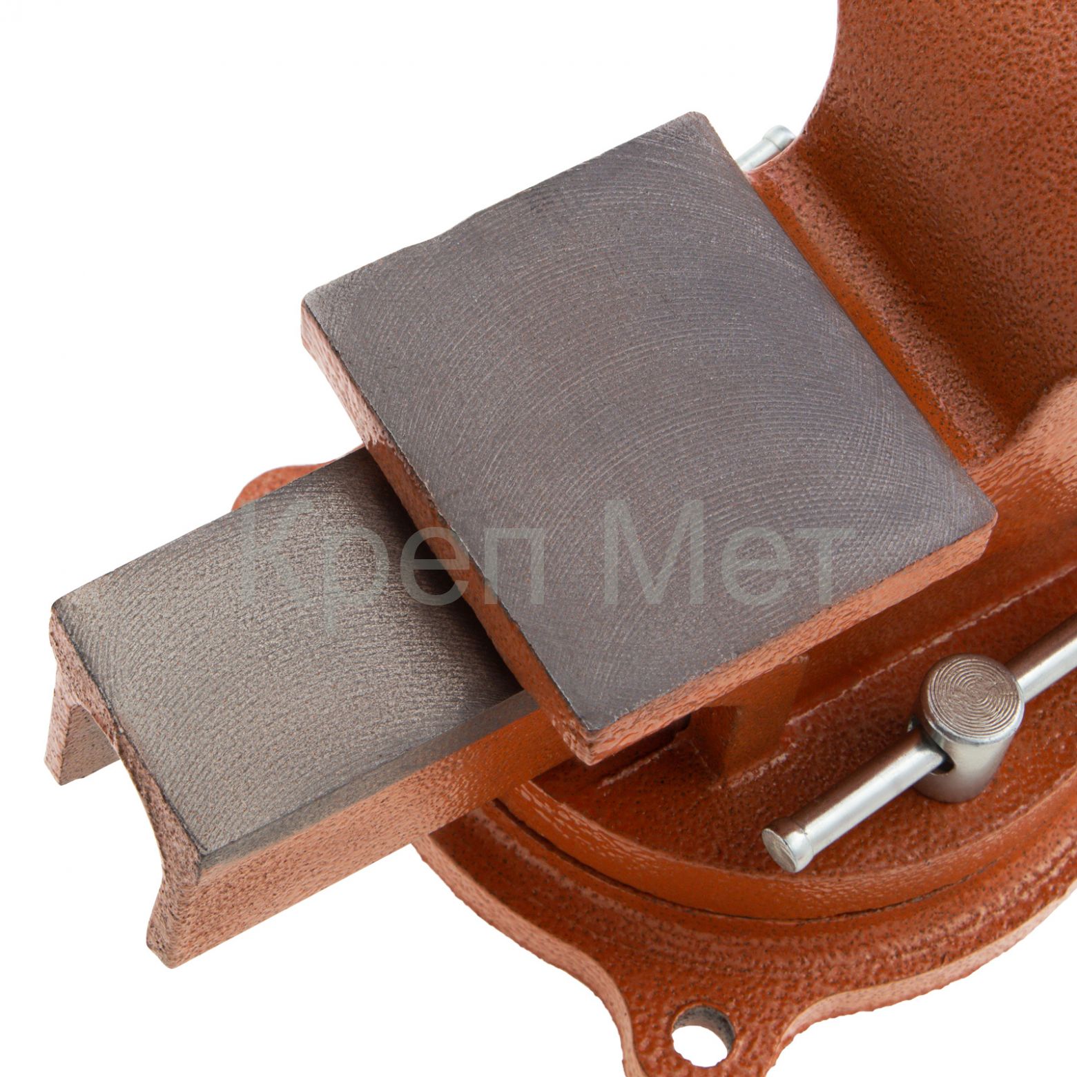 - Корпус тисков выполнен из чугуна, а губки — из стали, благодаря чему достигается высокая прочность инструмента.