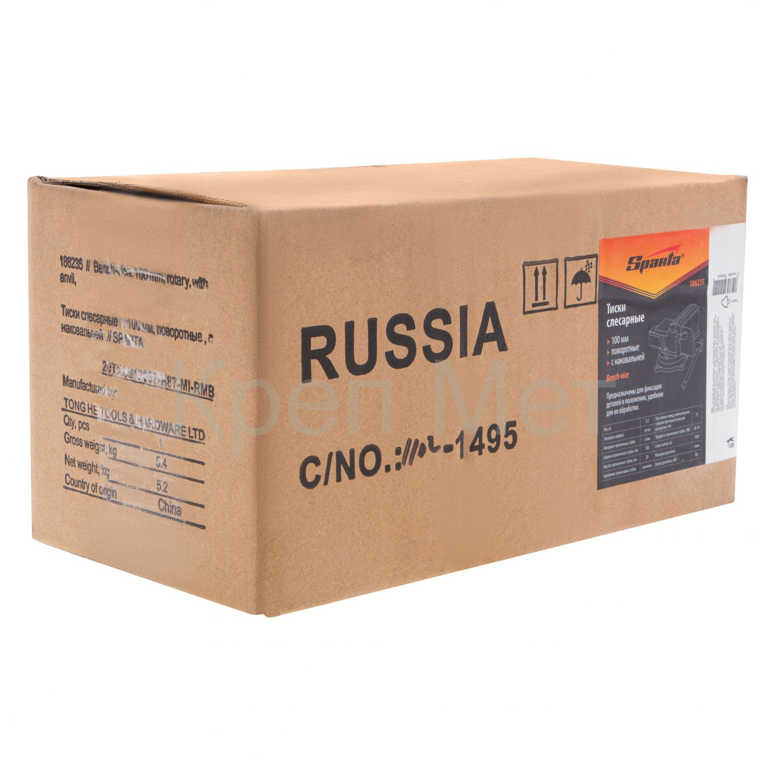 - Тиски слесарные, 100 мм, поворотные, с наковальней Sparta