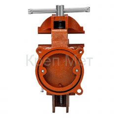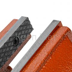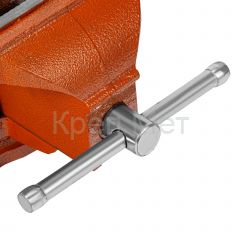 - Корпус тисков выполнен из чугуна, а губки — из стали, благодаря чему достигается высокая прочность инструмента.