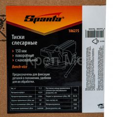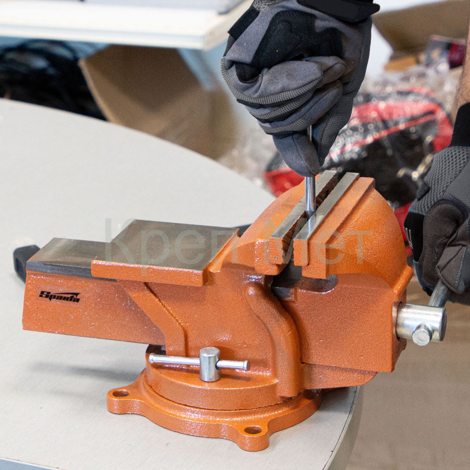 - Тиски слесарные, 150 мм, поворотные, с наковальней Sparta