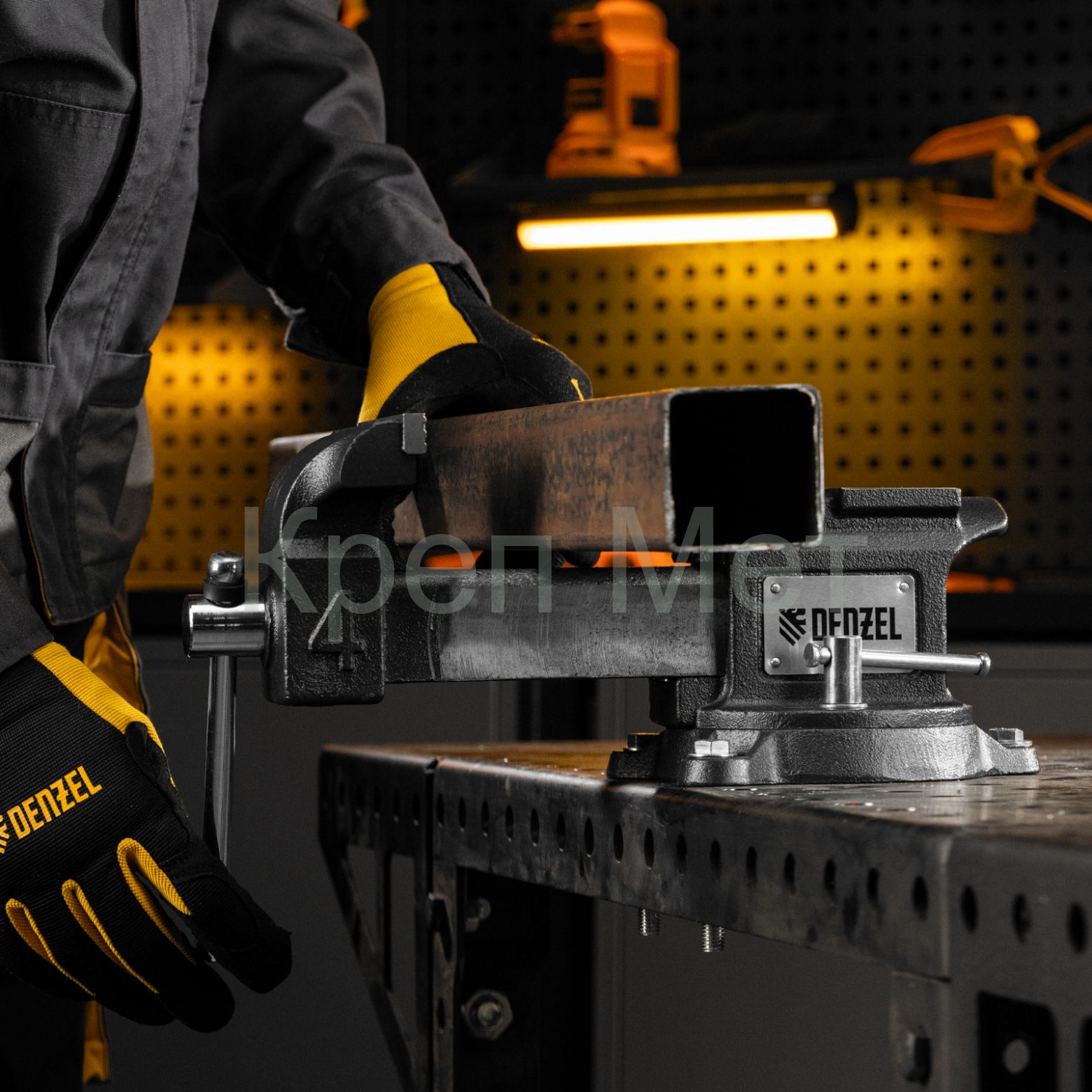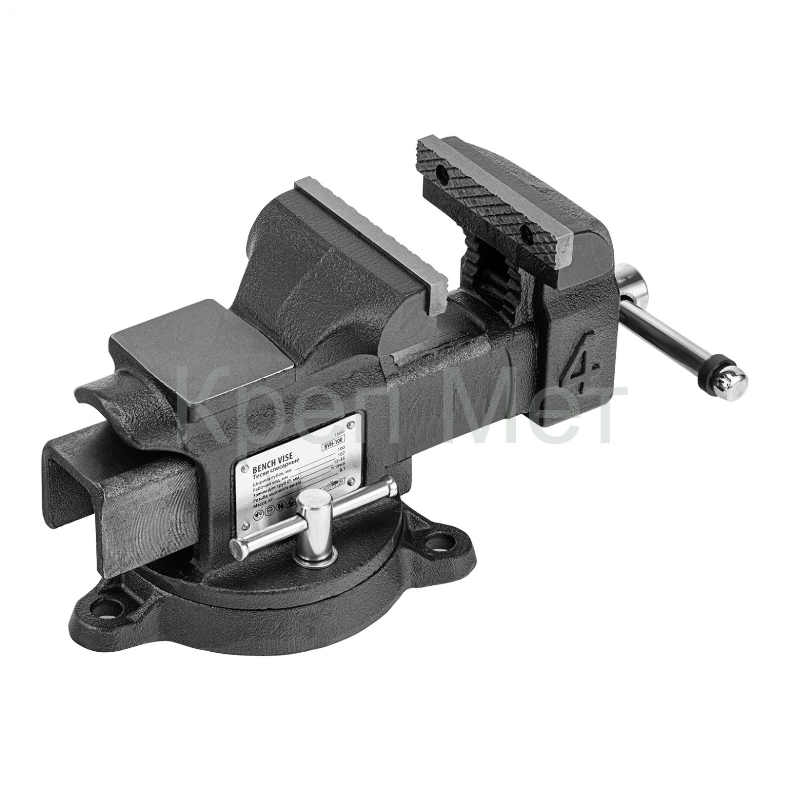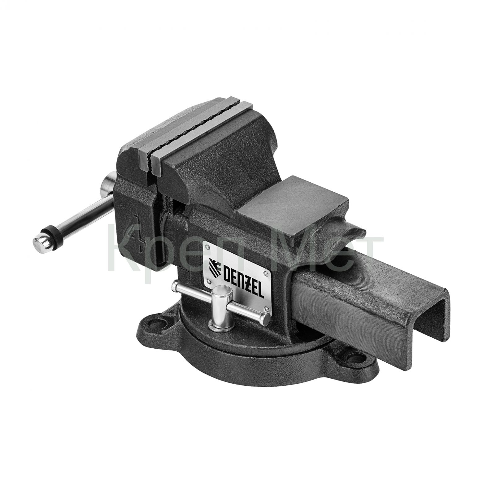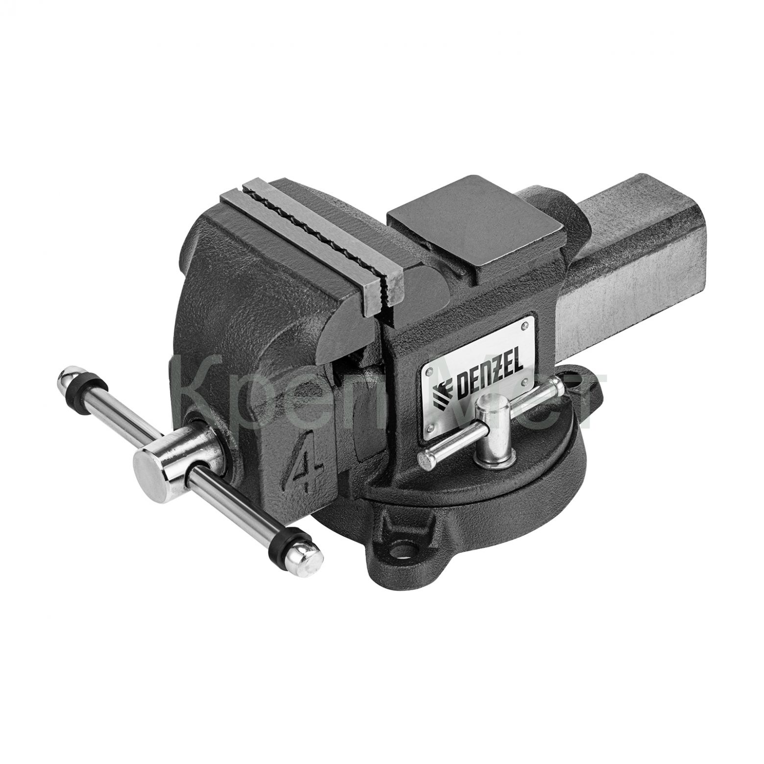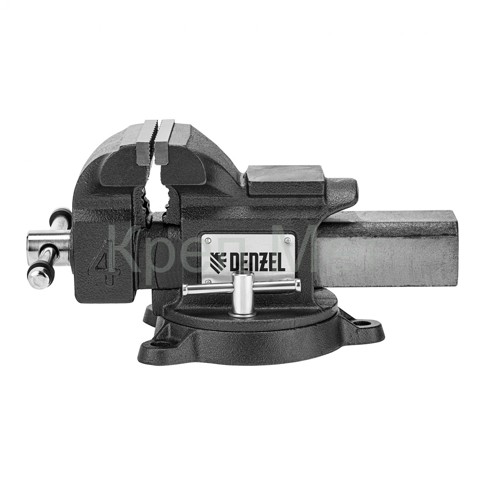 - Тиски слесарные BVH-100, 100 мм, поворотные, стальная направляющая, с наковальней //Denzel