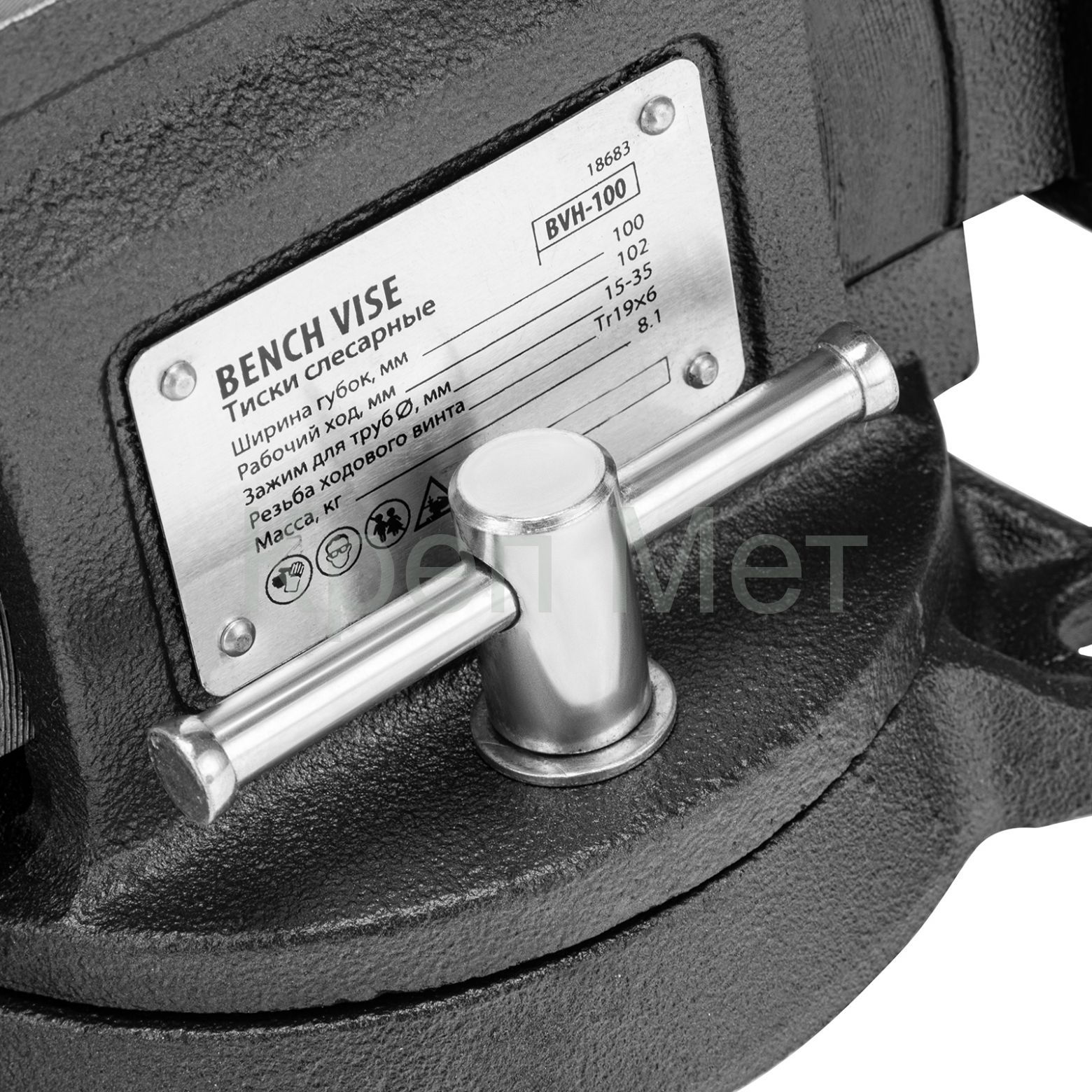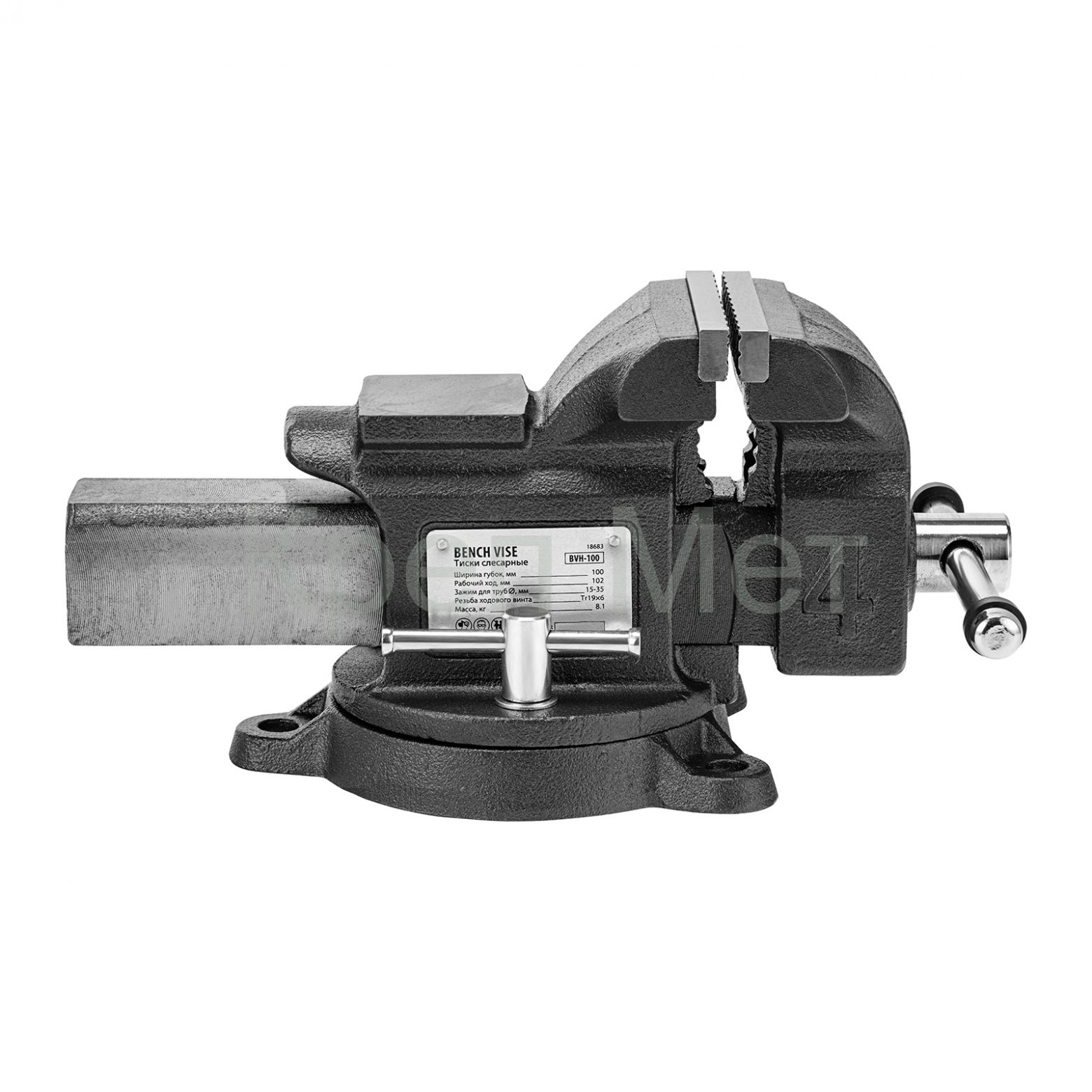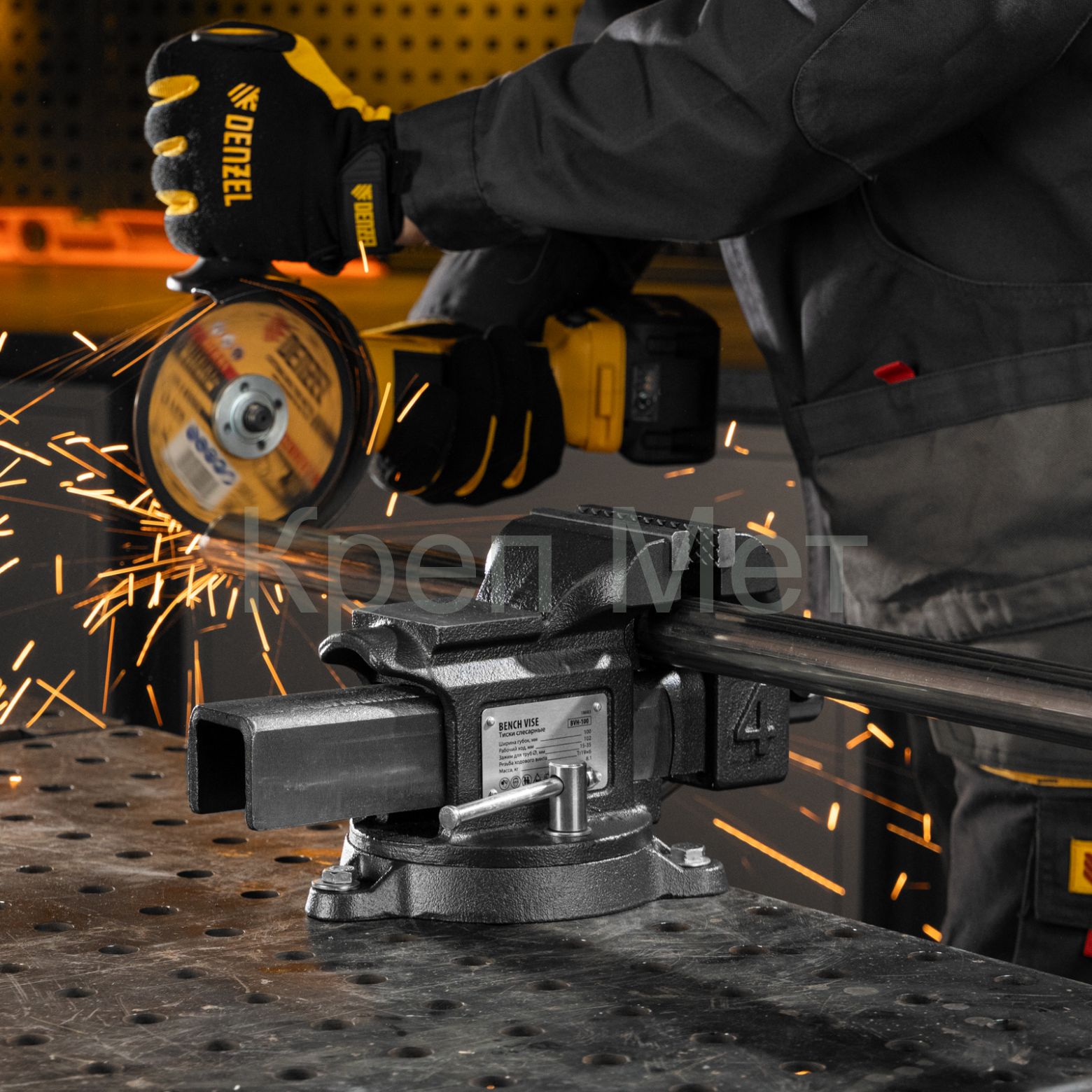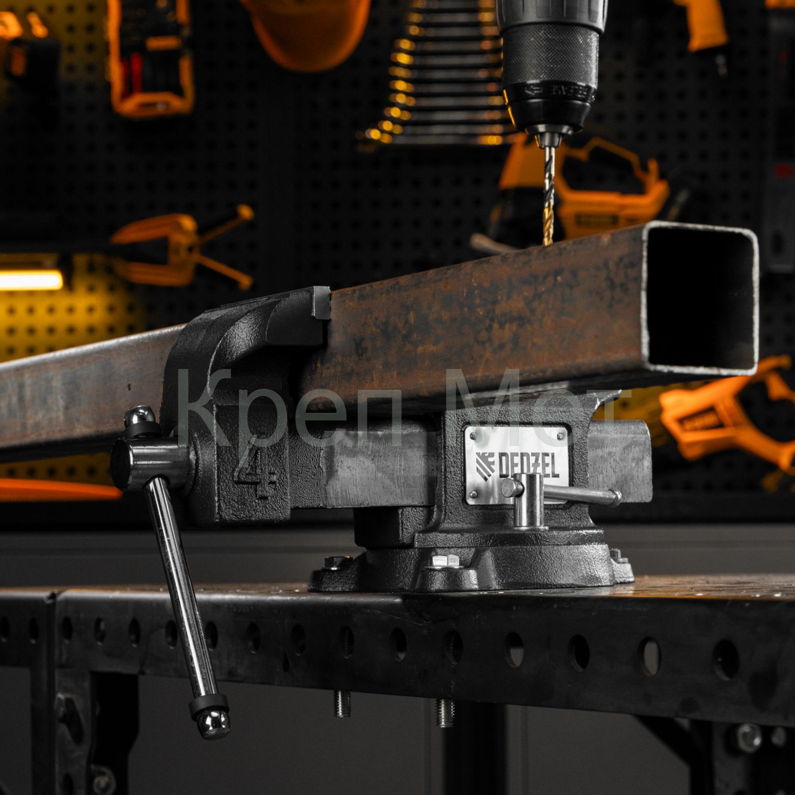 - Тиски слесарные BVH-100, 100 мм, поворотные, стальная направляющая, с наковальней //Denzel