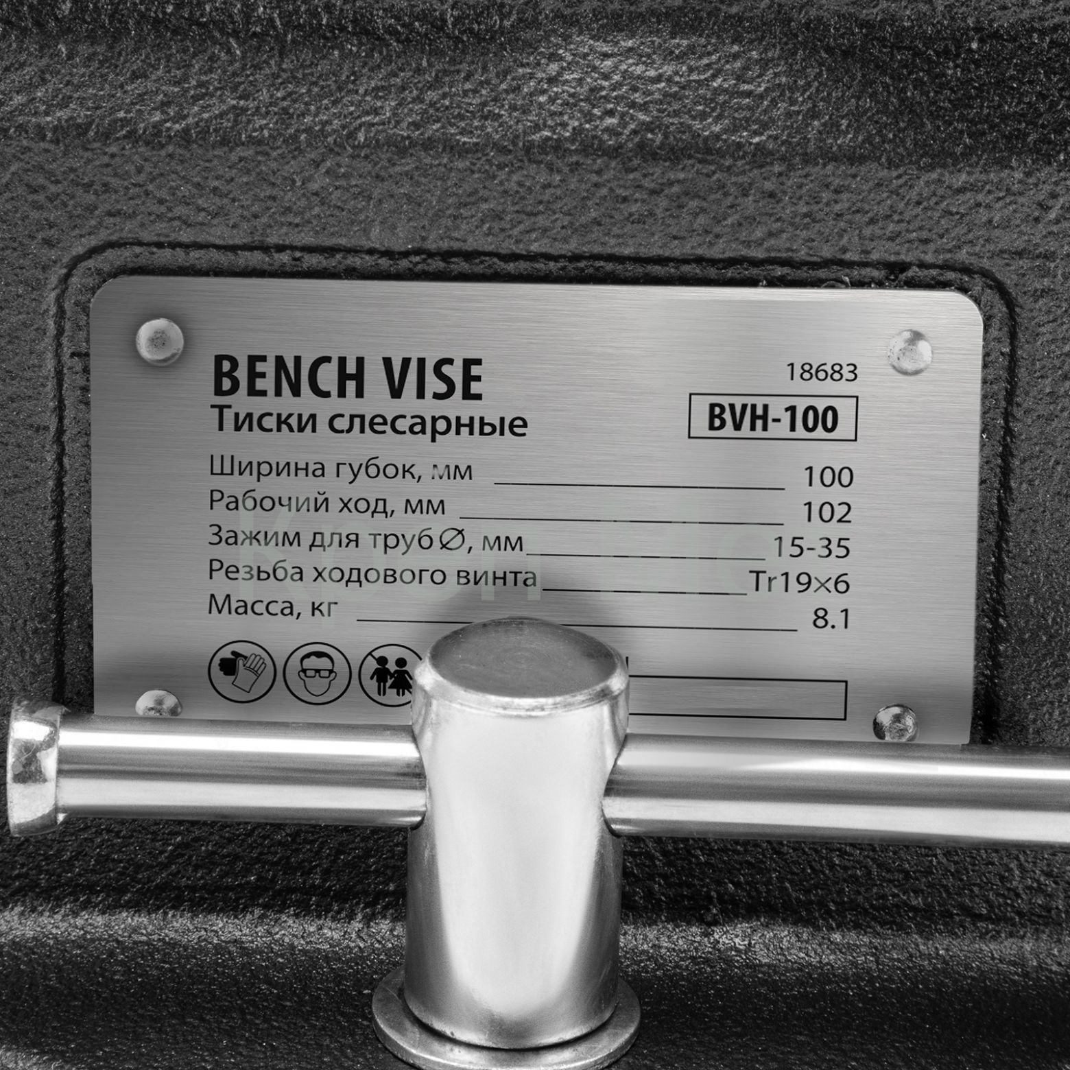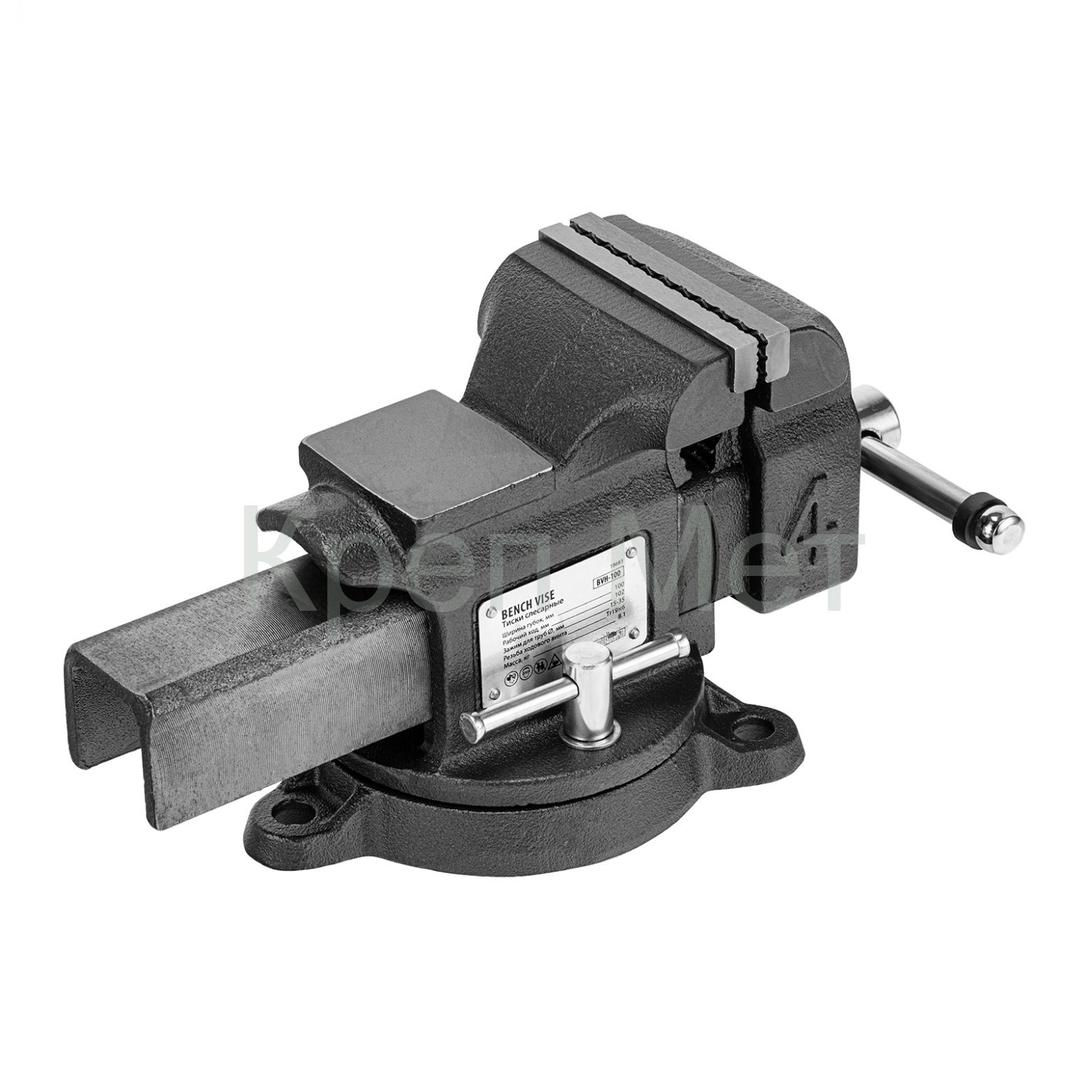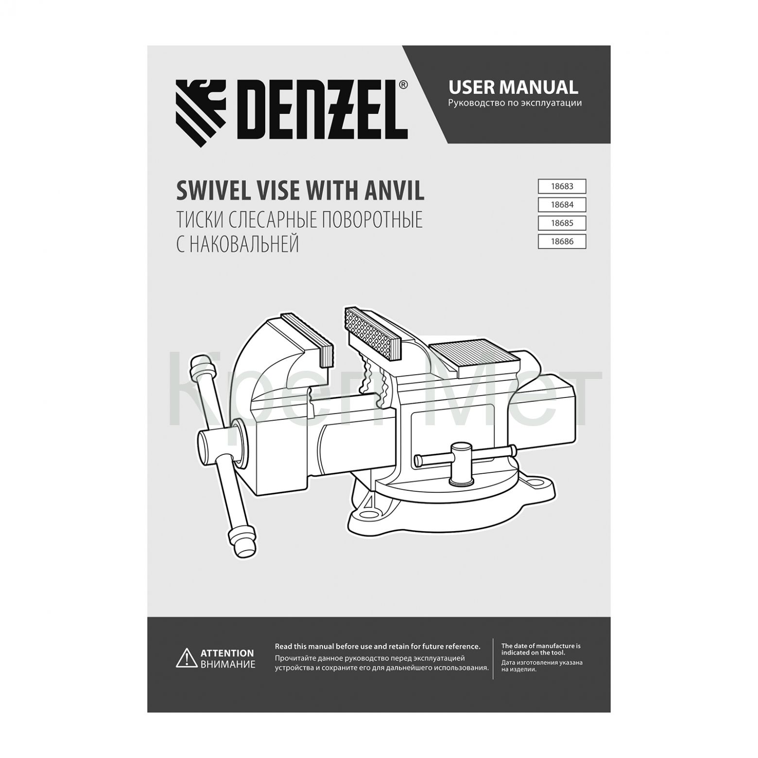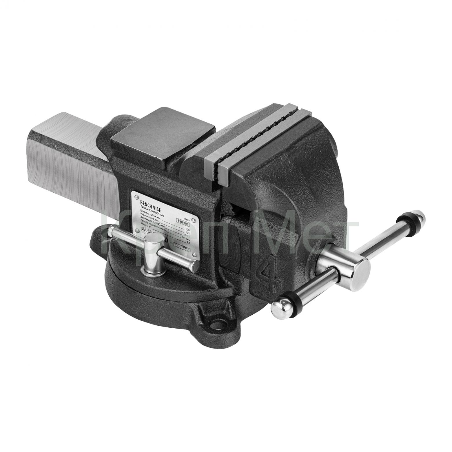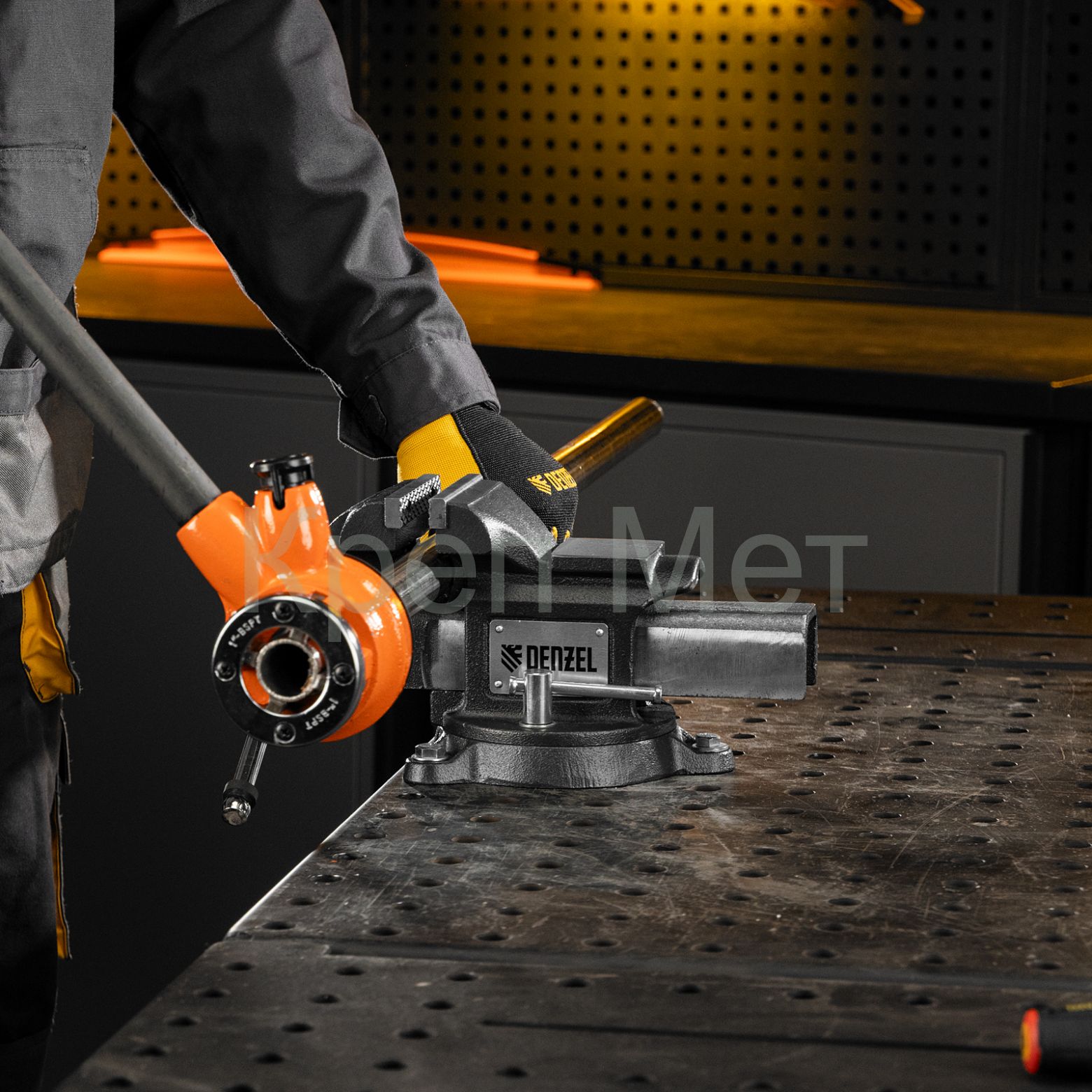 - Тиски слесарные BVH-100, 100 мм, поворотные, стальная направляющая, с наковальней //Denzel