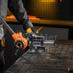 - Функциональность — тиски поворачиваются на 360°, что позволяет менять и выбирать позицию инструмента для удобной работы с заготовкой.