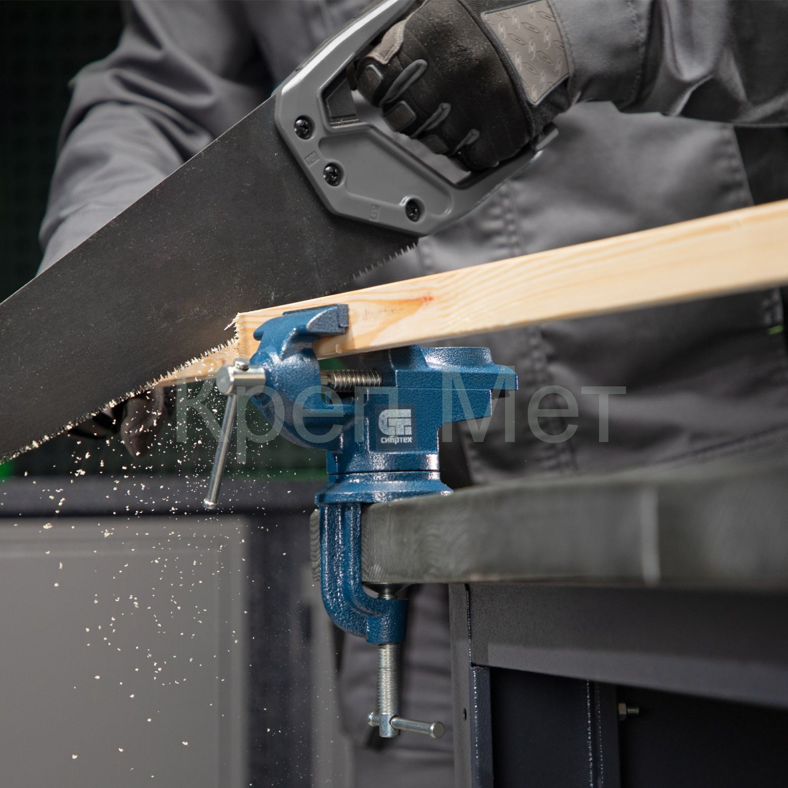 - Винтовой зажим позволяет быстро устанавливать и снимать тиски, поэтому их можно использовать на различных рабочих местах.