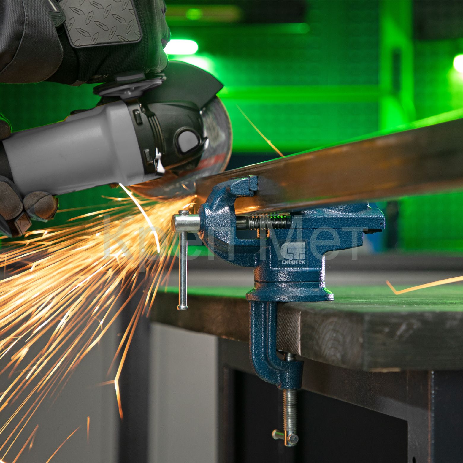 - Тиски слесарные, настольные, поворотные, ширина рабочих губок 65 мм, наковальня Сибртех