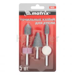 Точильные камни Matrix 76020, 5 шт., используются в качестве насадок для дрели и шуруповерта. С их помощью можно обрабатывать поверхности из металлов, в том числе цветных, а также пластика, снимать фаски и заусенцы, сглаживать неровности. Камни подходят для выполнения отделочных и декоративных работ.