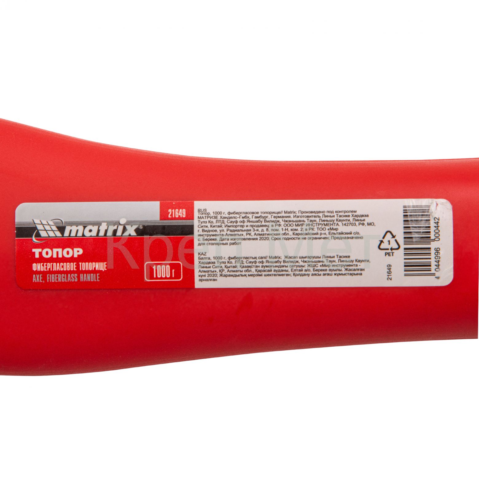 Топор Matrix 21649 с рабочей частью весом 1000 г и фибергласовым топорищем предназначен для рубки, тесания и колки твердой или мягкой древесины. Будет полезен на дачном и сельскохозяйственном участке для заготовки дров, рубки кустов, сучьев, а также выполнения других работ. Топор оптимален для полупрофессионального применения.