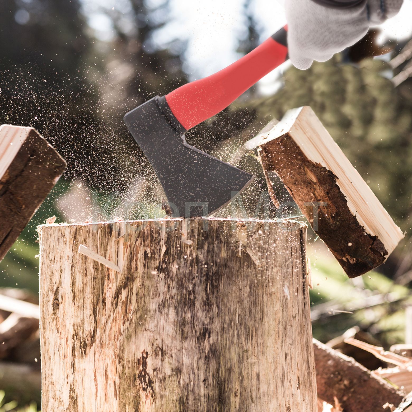 • Эффективность — топорище длиной 440 мм в сочетании с полотном весом 1000 г позволяет быстро разрубать поленья.