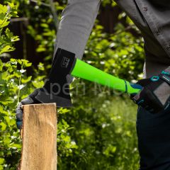 - Эффективная работа — рукоятка длиной 415 мм обеспечивает сильный замах, полотно весом 1000 г позволяет быстро разрубать поленья.