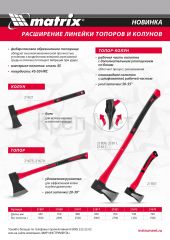 Топор Matrix 21679 длиной 700 мм, с полотном массой 1500 г и фибергласовым топорищем, предназначен для рубки и тесания древесины любых пород. Полукруглая кромка легко врезается в материал, обеспечивая эффективность работы. Топор используется для выполнения плотницких работ, будет полезен на даче и в мастерской.