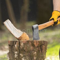 - Прочность — топорище изготовлено из твердой древесины бука и покрыто защитным лаком для предотвращения рассыхания и разбухания.