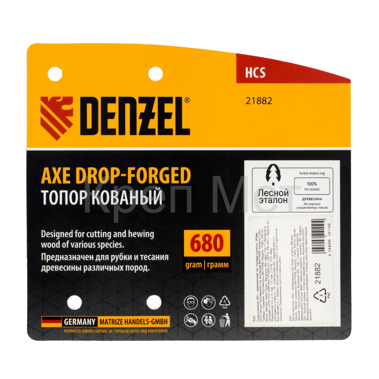 - Маркировка «Лесной эталон» — при изготовлении топорища использована древесина из сертифицированных лесов, полностью соблюдены требования, направленные на сохранение экологически ценных лесов.
