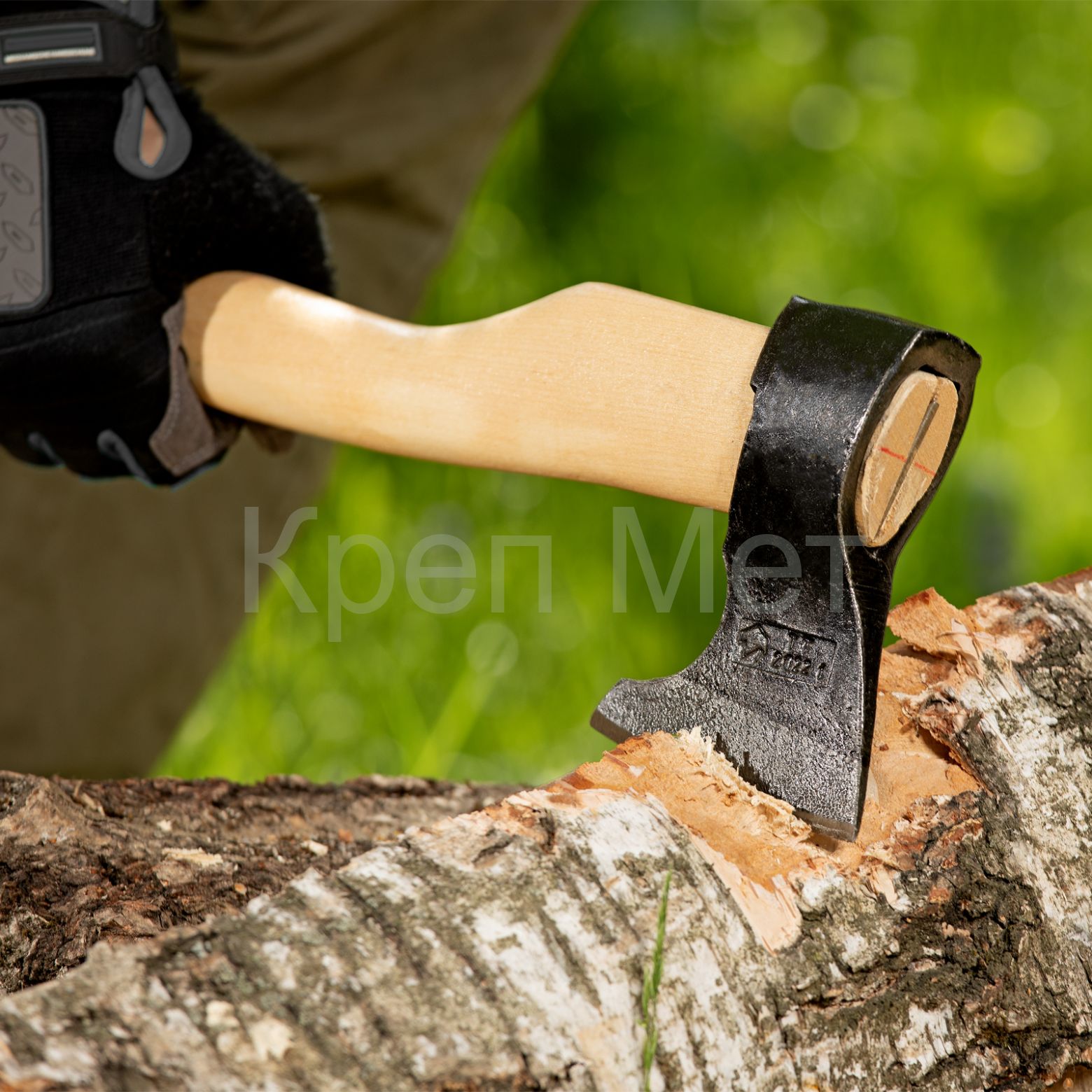 - Голова топора выполнена из прочной стали 60Г и закалена.