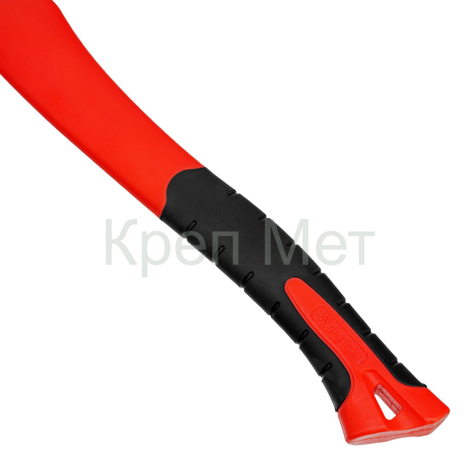 - Эргономичность — слегка изогнутое двухкомпонентное топорище с резиновыми накладками не выскальзывает из рук.