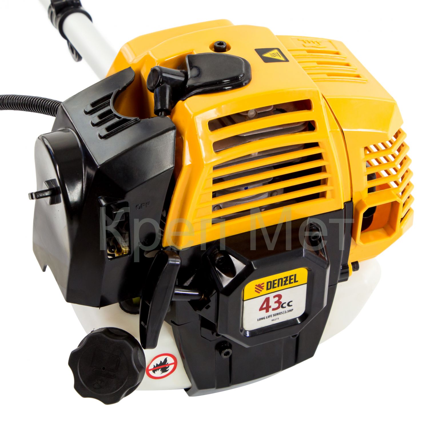 - Триммер бензиновый DR-43, 43 см3, неразъемная штанга, состоит из 2 частей Denzel