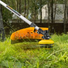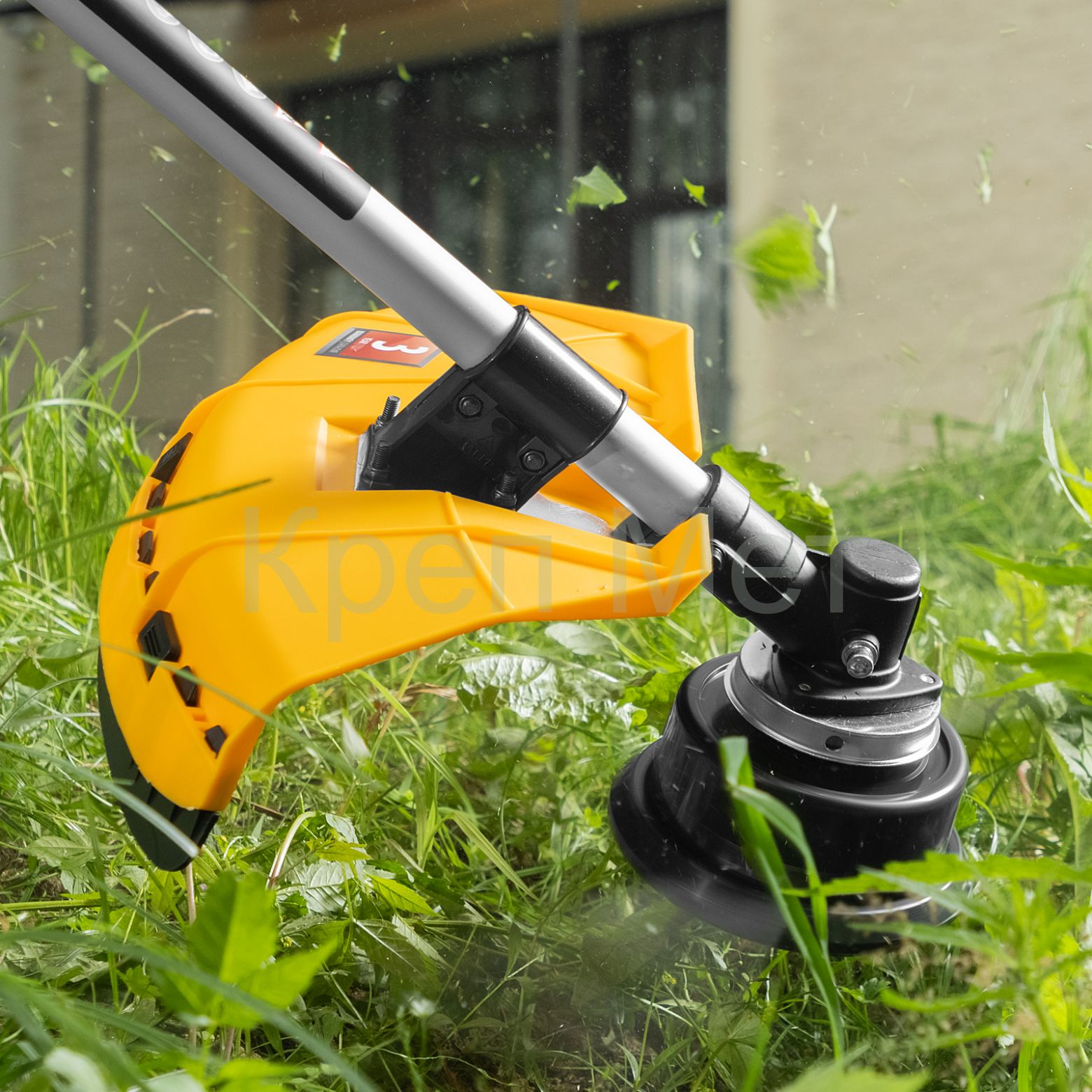 - Разгрузка позвоночника — одноплечевой ремень перераспределяет вес триммера, обеспечивая комфорт во время длительной работы.