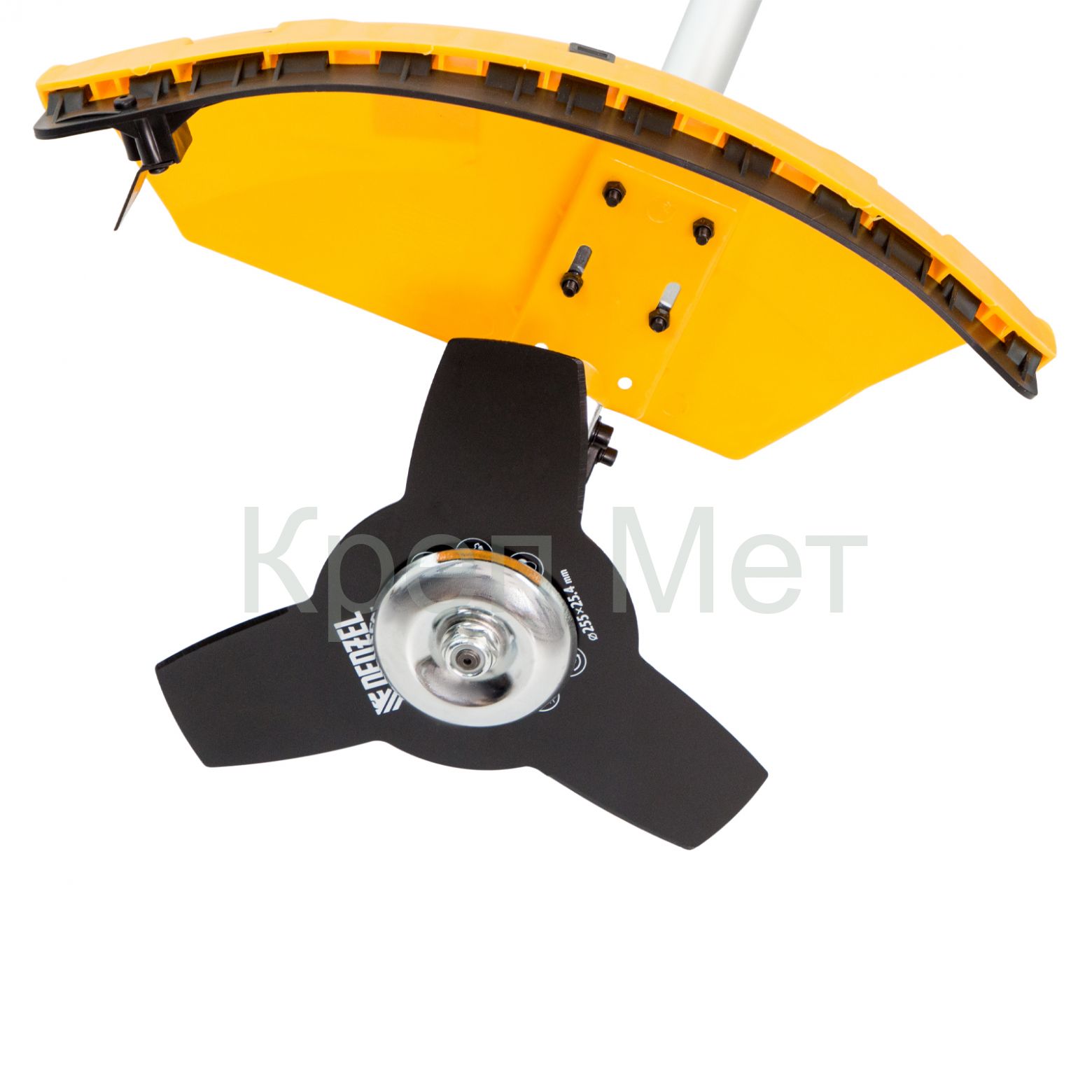 - Защита пользователя от разлетающейся травы и камней — производитель предусмотрел надежный кожух из противоударного пластика.