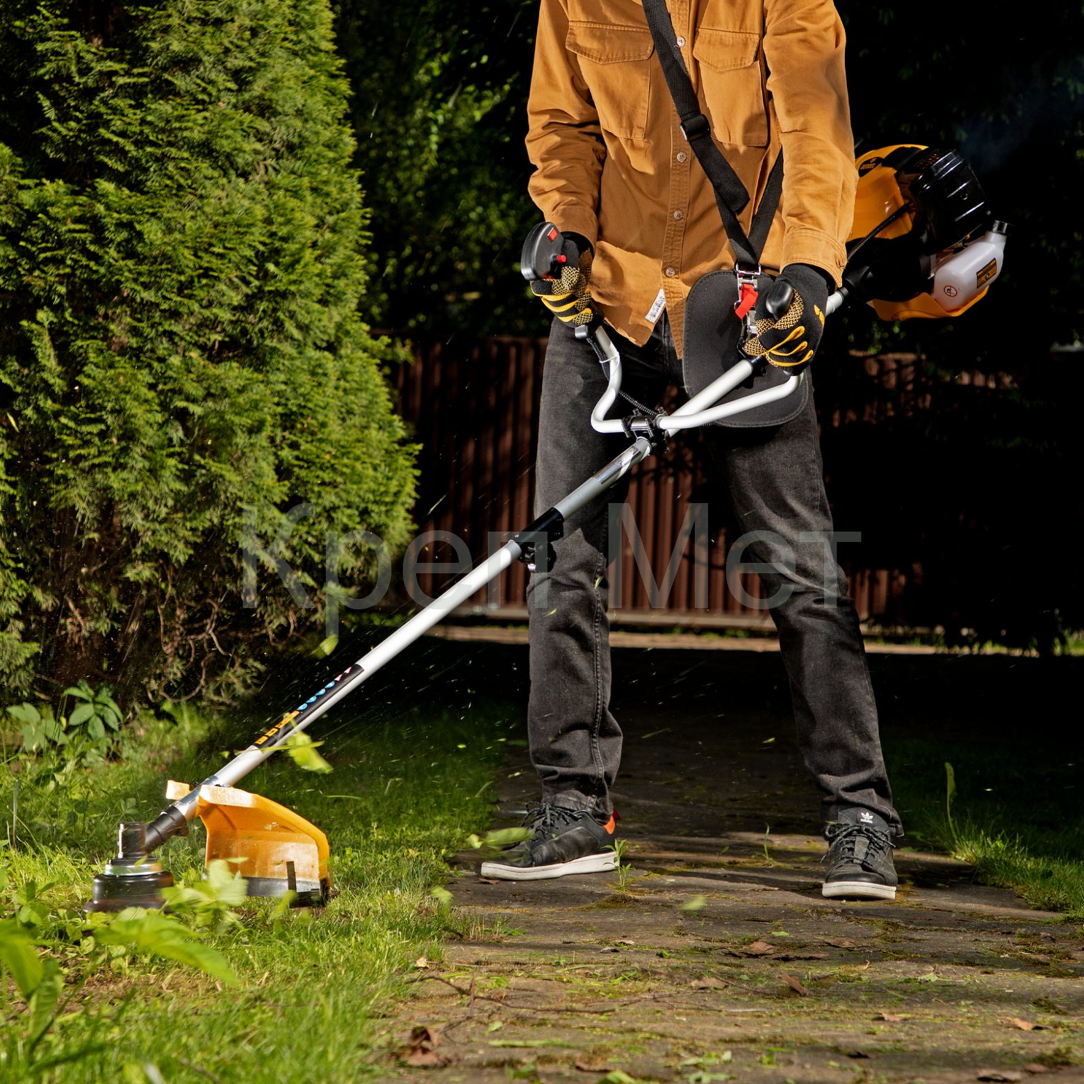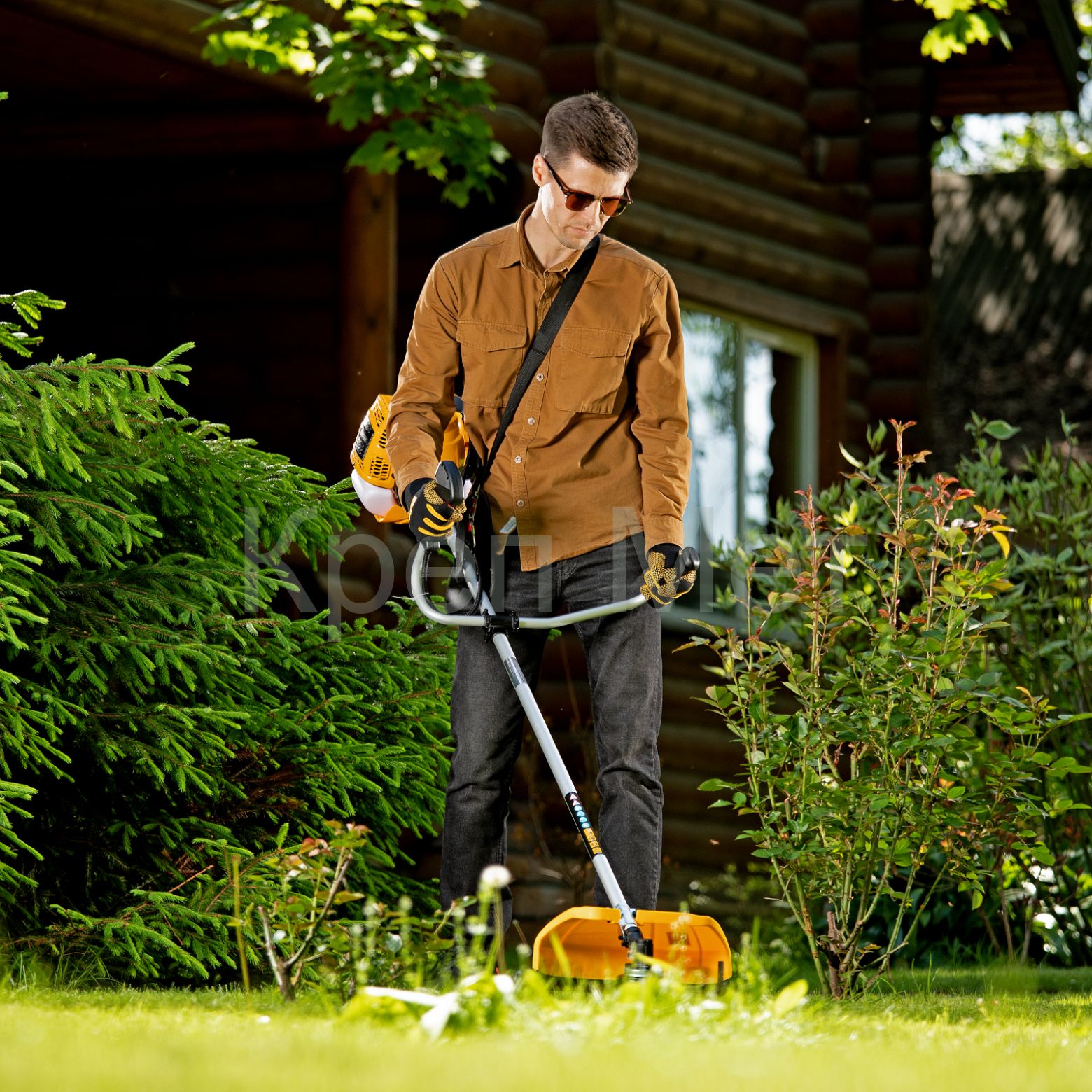 - Мобильность — вес триммера составляет всего 7,6 кг, как у моделей с меньшей мощностью, поэтому его легко перемещать.