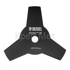 - Дополнительные возможности — можно приобрести диск Denzel 96323 с шириной скашивания 230 мм для быстрого удаления растительности с жесткими стеблями, 96328 для скашивания молодых побегов кустарника диаметром до 3 мм, 96340 для срезания борщевика, кустарника и молодых побегов деревьев с диаметром стволов до 10 мм.