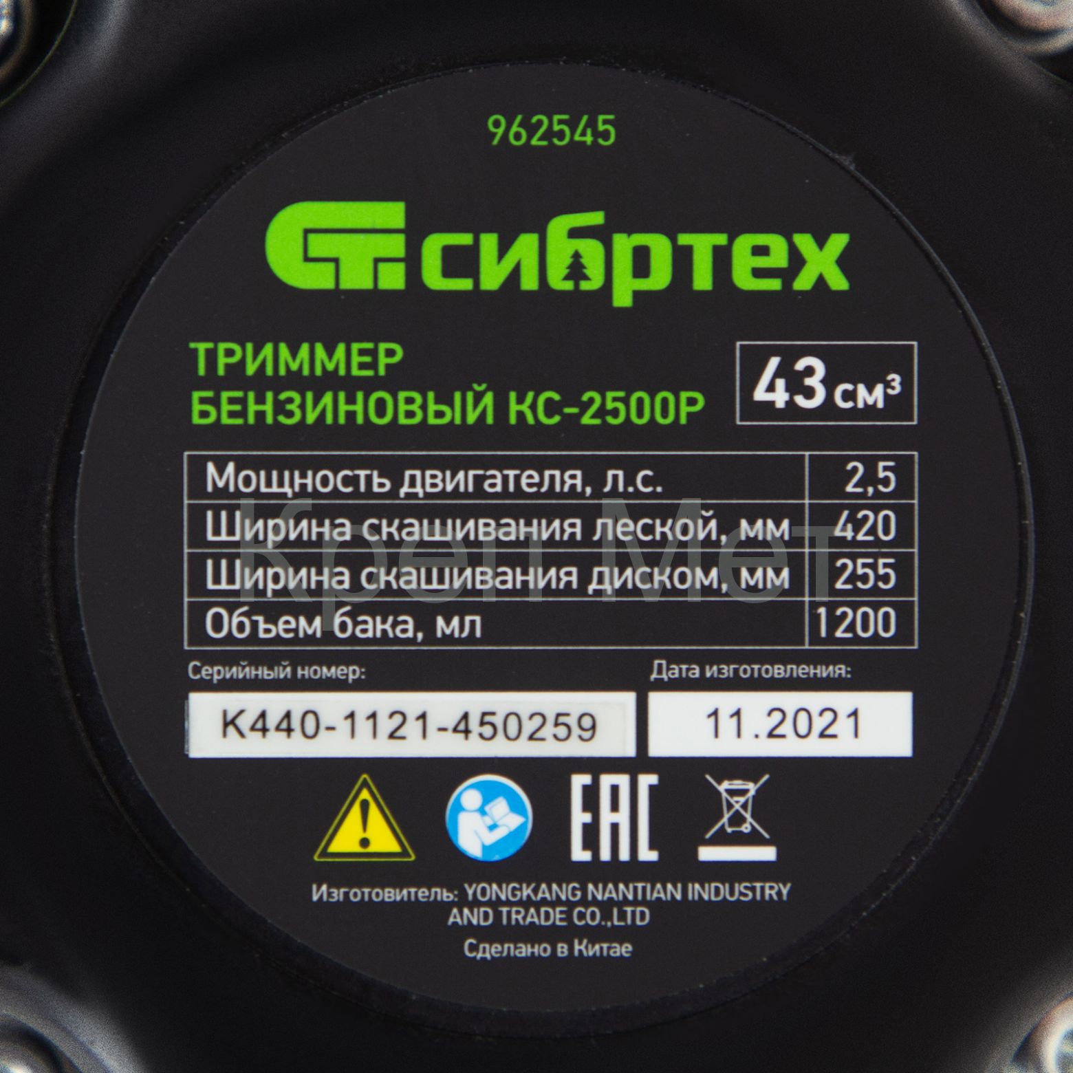 - Триммер бензиновый КС-2500Р, 43 см3, разъемная штанга, состоит из 2 частей Сибртех