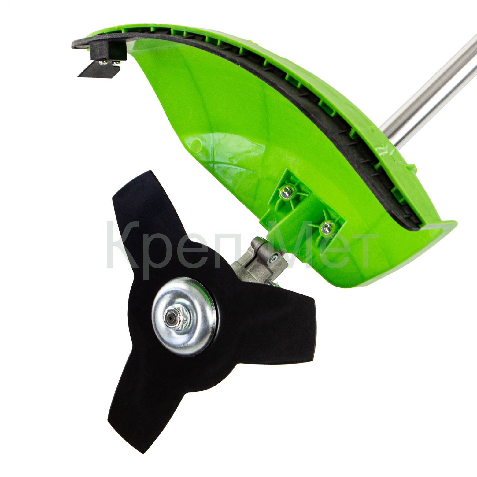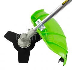 - Защита от летящей травы и камней — режущий элемент со стороны пользователя закрыт прочным пластиковым кожухом.