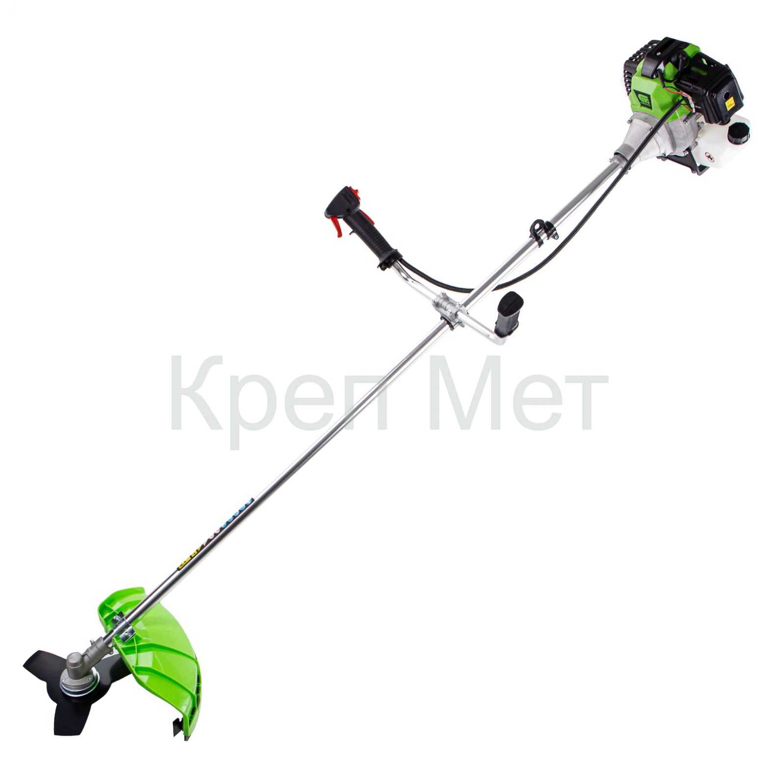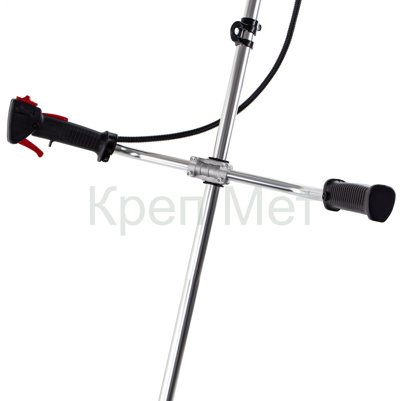 - Комфорт во время работы — ручки велосипедного типа обеспечивают оптимальное положение рук, а плечевой ремень равномерно распределяет вес инструмента, поэтому мотокосу удобно удерживать и направлять.