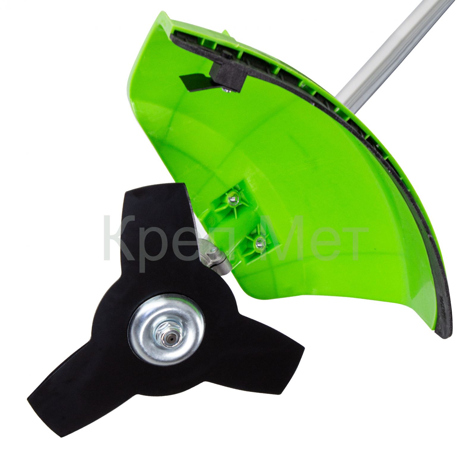- Автоматическая обрезка корда — специальный нож на кожухе укорачивает леску до нужной длины, предотвращая излишнюю нагрузку на двигатель.