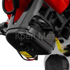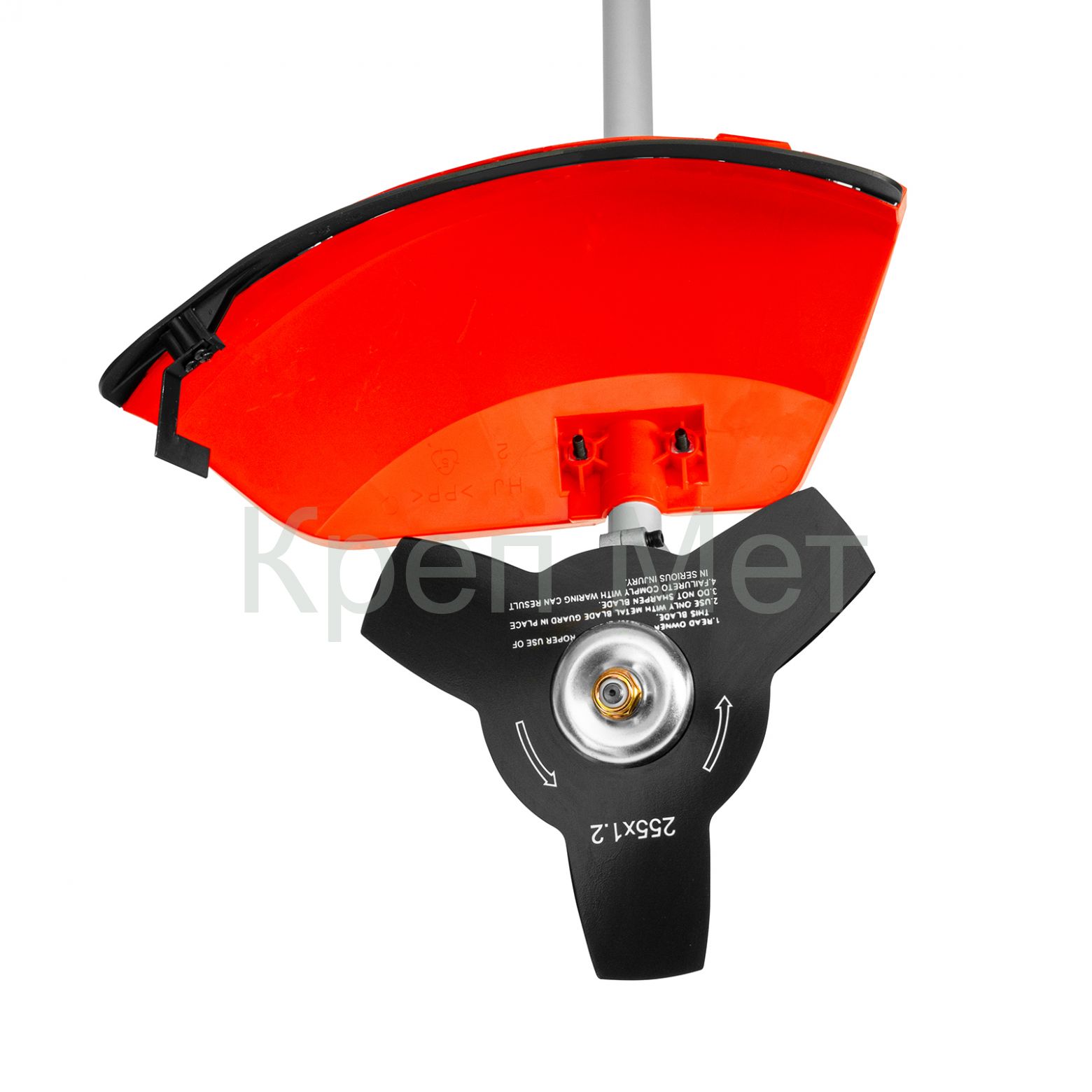 - Безопасность — производитель предусмотрел блокировку курка газа для предотвращения случайного запуска, защитный кожух препятствует вылету травы, веток, камней в сторону пользователя.