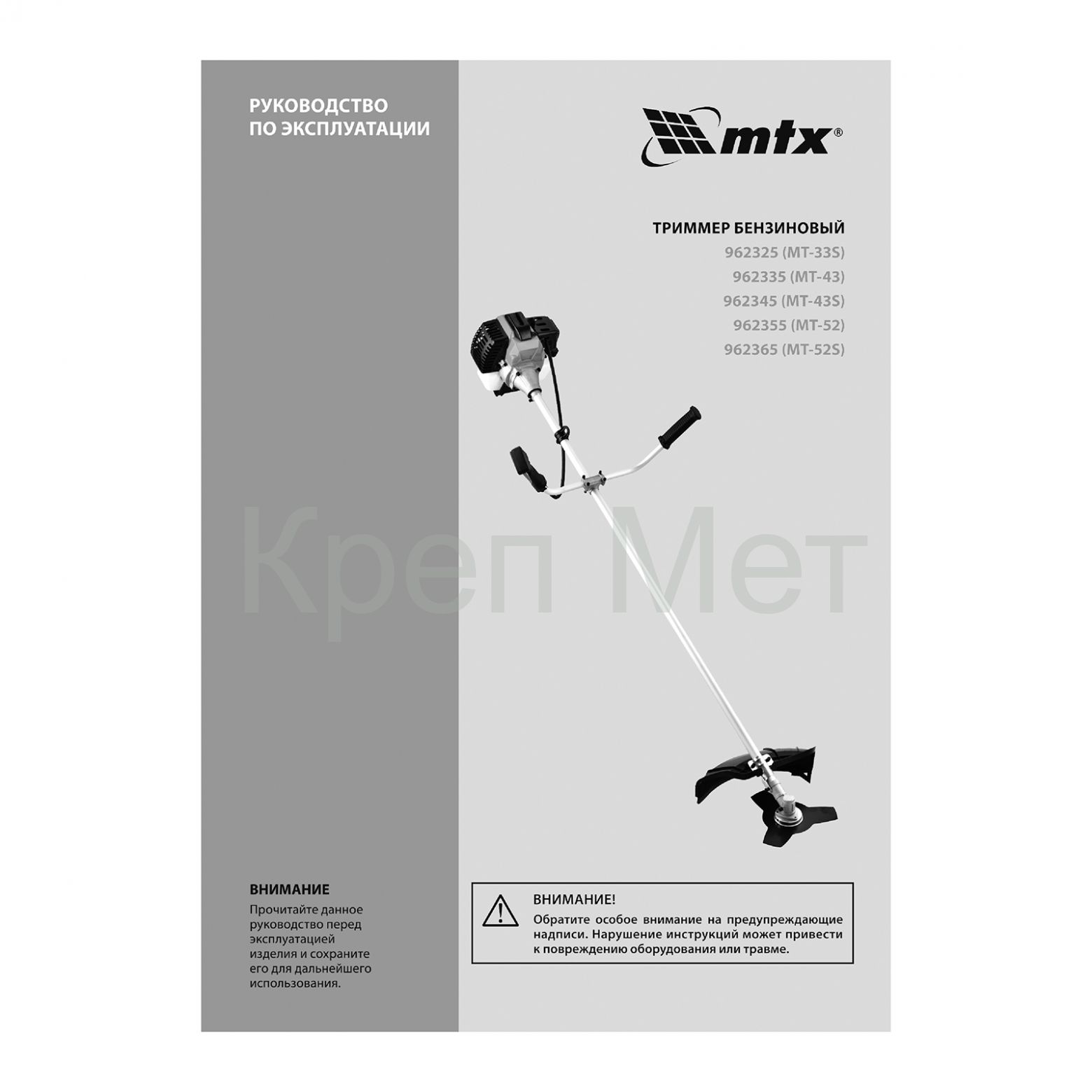 - Триммер бензиновый MT-33S, 33 см³, разъемная штанга, состоит из 2 частей MTX